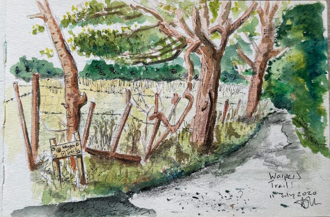 I also sketch to dispel anxiety. In one sketchbook next to a watercolour of the Warper’s Trail I’ve written:
