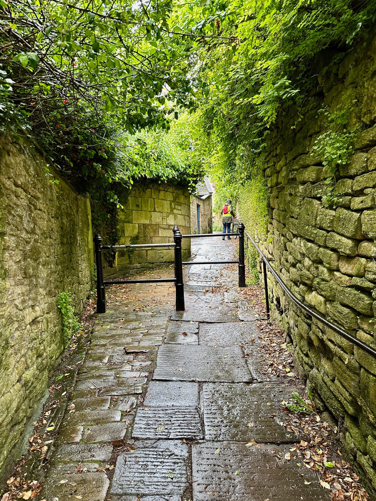 With the weather so dismal, I hesitate, thinking it would be best to see it in its prime. But as soon as I reach the bridge at Bradford, my mind changes. I pull over, reconfigure Waze, and realise it’s just a few minutes away. Parking the van proves tricky, but I finally find a spot about ten minutes from the church, leading me along a charming old packhorse route into the heart of town.