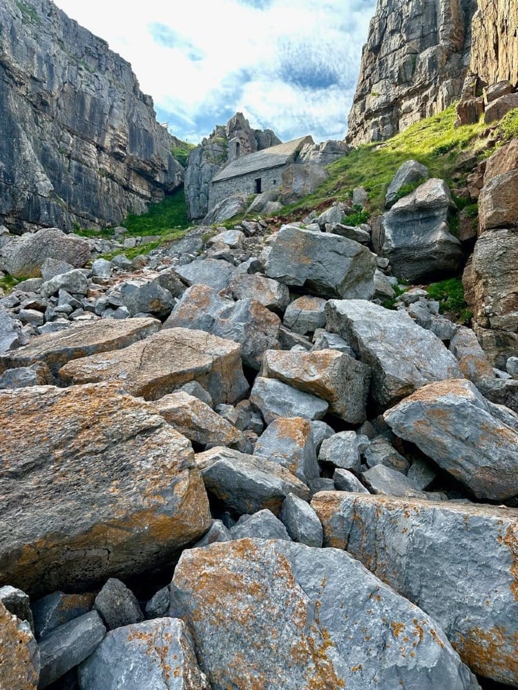 Other birds - our Pembrokeshire cousins - might get the same sense of awe and wonder when hopping around the rocks at St. Govan’s - a building rising above the boulders, cockled to the side of a cliff.