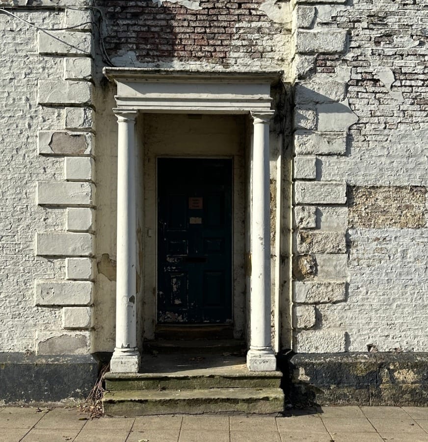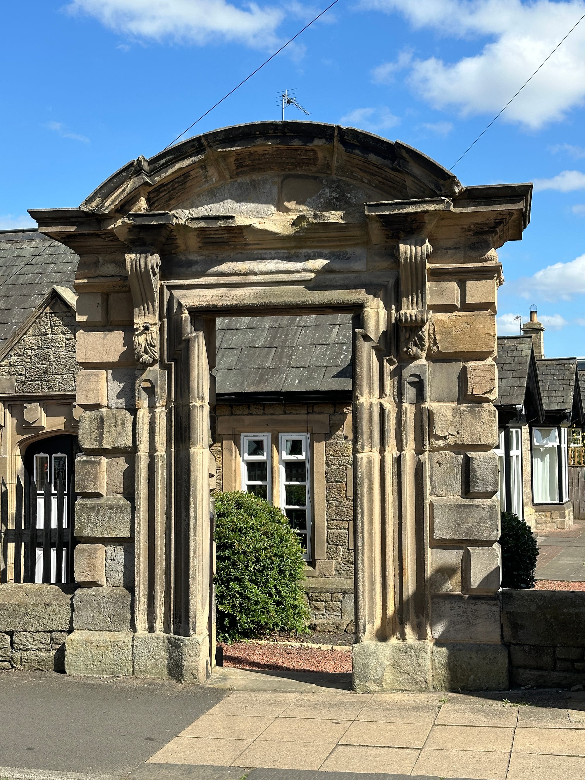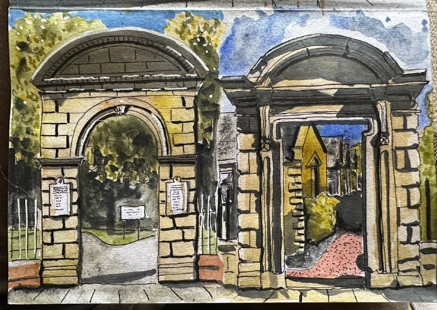 The isolated door case corresponds with another unrelated one at the entrance to the park next to the abbey. I say unrelated - because I brought them together in a little sketch I did: