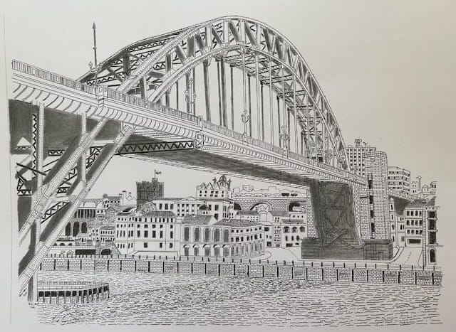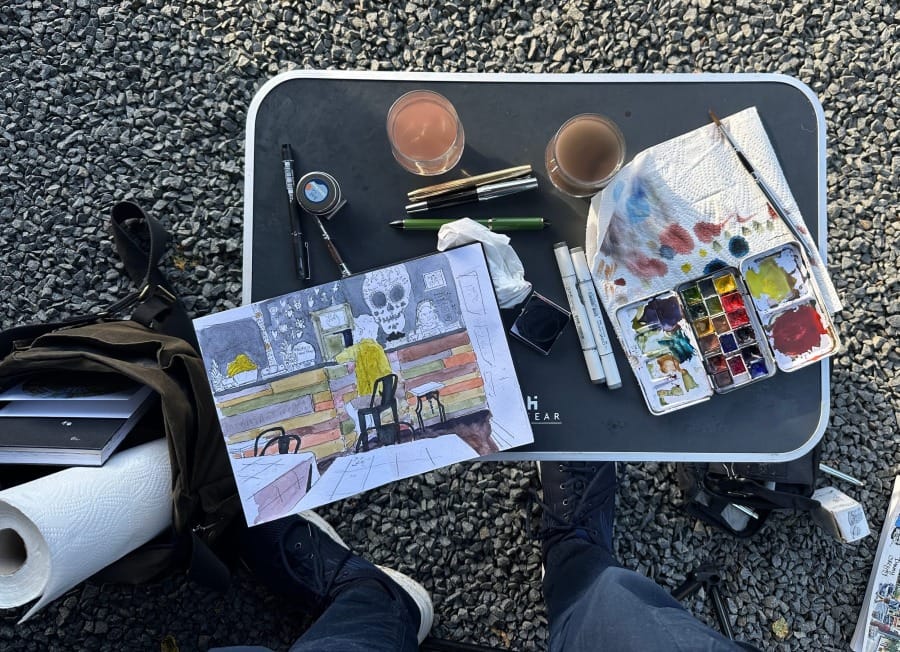 Whilst I’m sketching, I sense another person stood beside me, watching me at work. The man tells me that he is called Bill and that he has wanted to sketch outside for a long time, but he struggles with the immediacy.