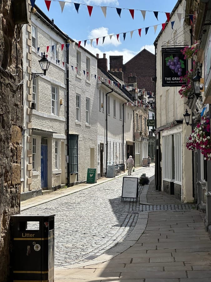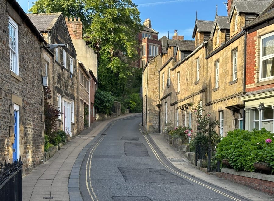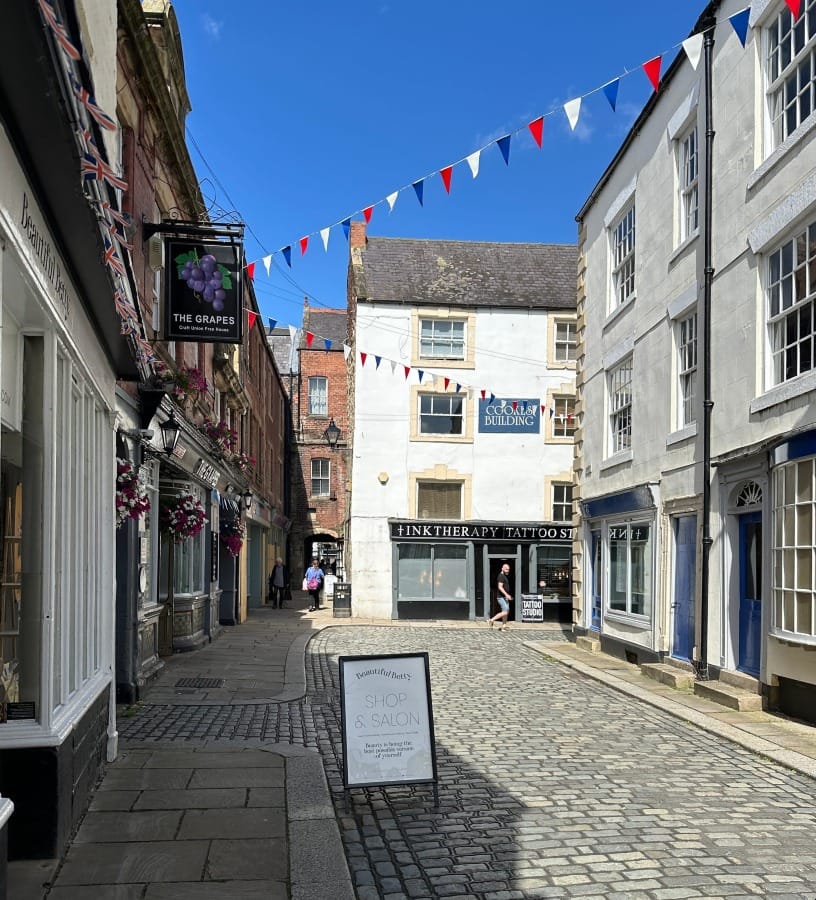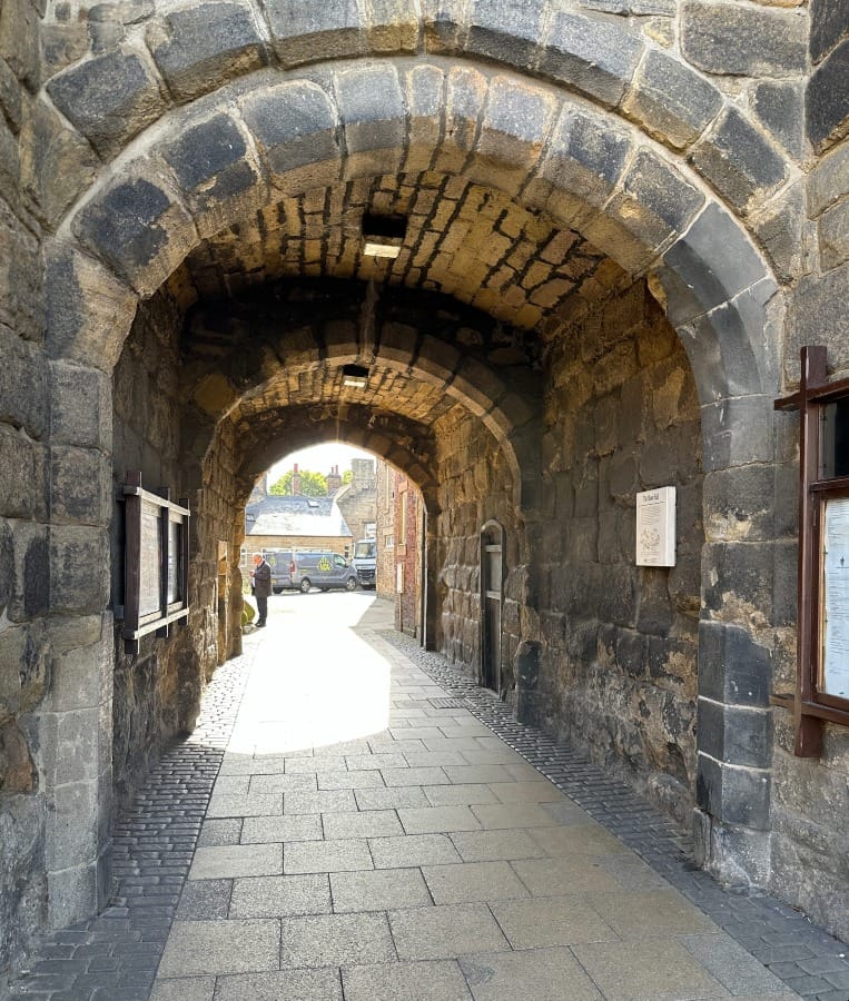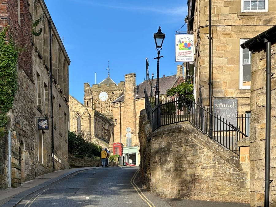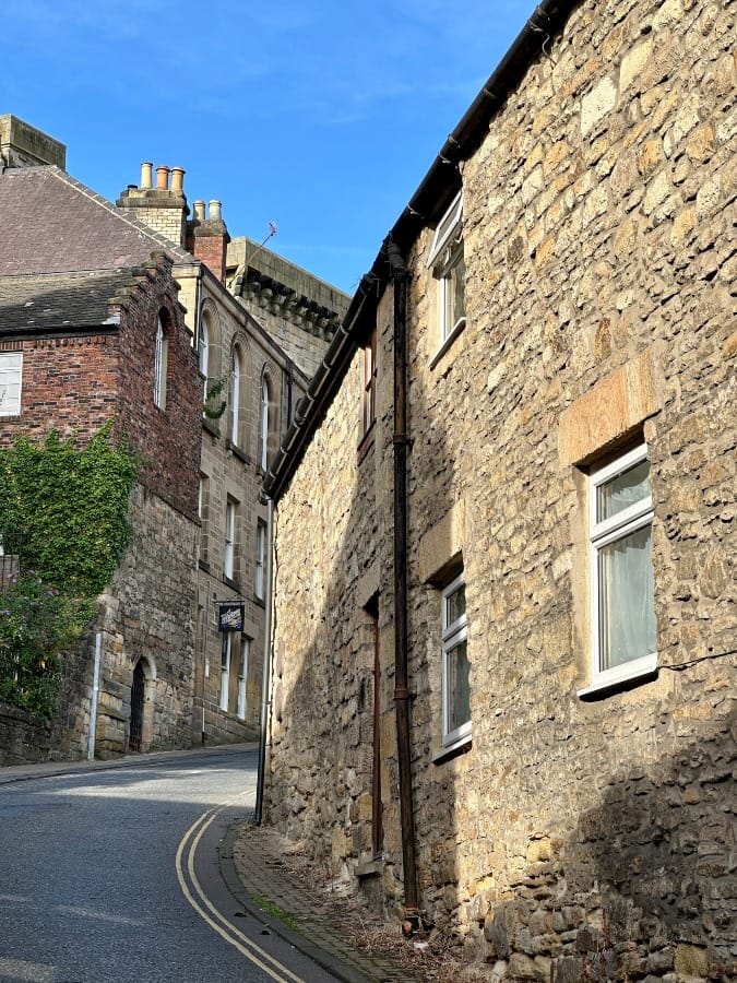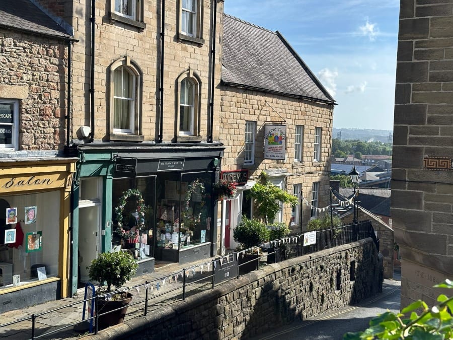 The town rises up via streets that were laid down centuries ago. The best way to enter Hexham on foot is via Hallstile Bank which takes you past the delightful Henry King Memorial Almshouses and its standing portal.