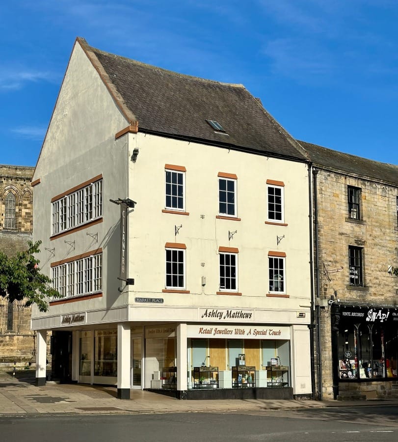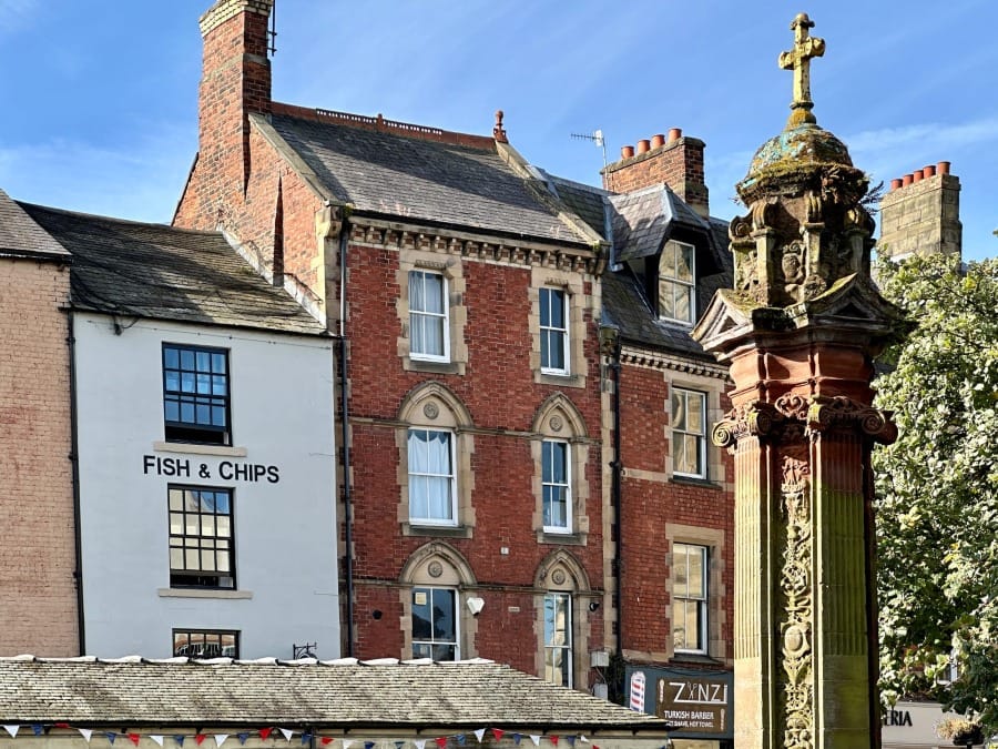 My journey takes me up Hallstile Road and into the market place and thereabouts. Buildings of note include The Shambles - the covered market built in 1766; The Moot Hall - C15th gatehouse at the east end of market place; The Old Gaol - one of the first purpose built gaols in England (early C14th).