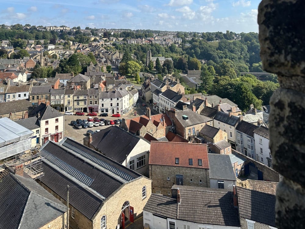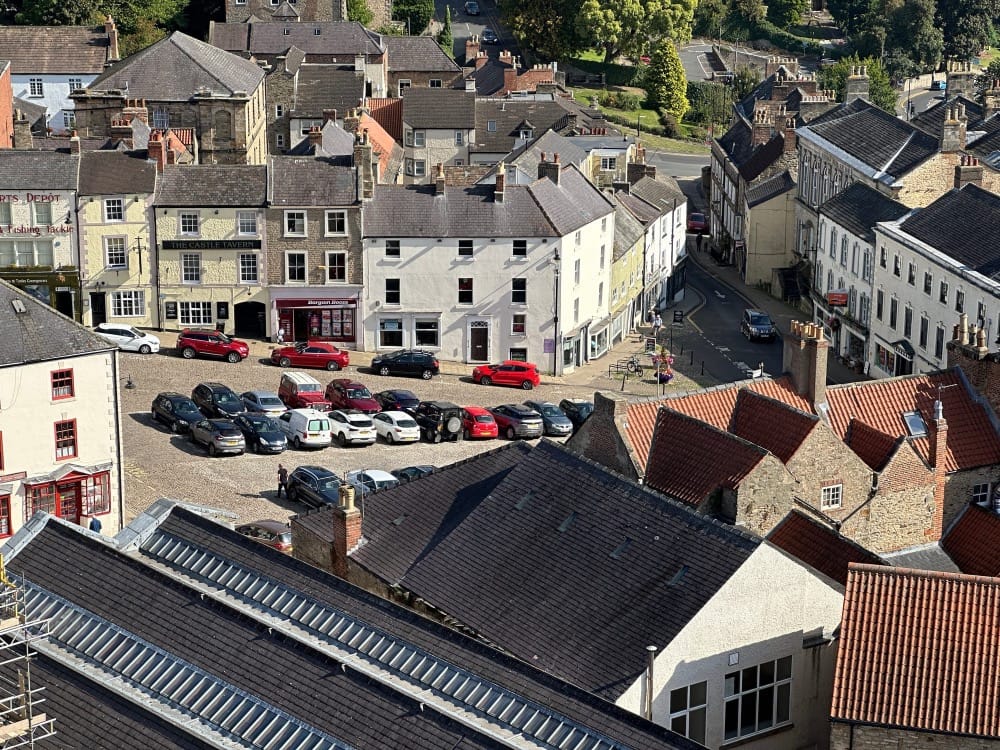 'Richmond is one of the visually most enjoyable small towns of the North of England. This is due to the Swaledale scenery around, which one is never far from, to the great bold accents of the high, broad and mighty keep and the slender, lacy tower of the Greyfriars, and to the way the town rises steeply from the river to the market place and then in a less compact, more tarraced way yet higher.'