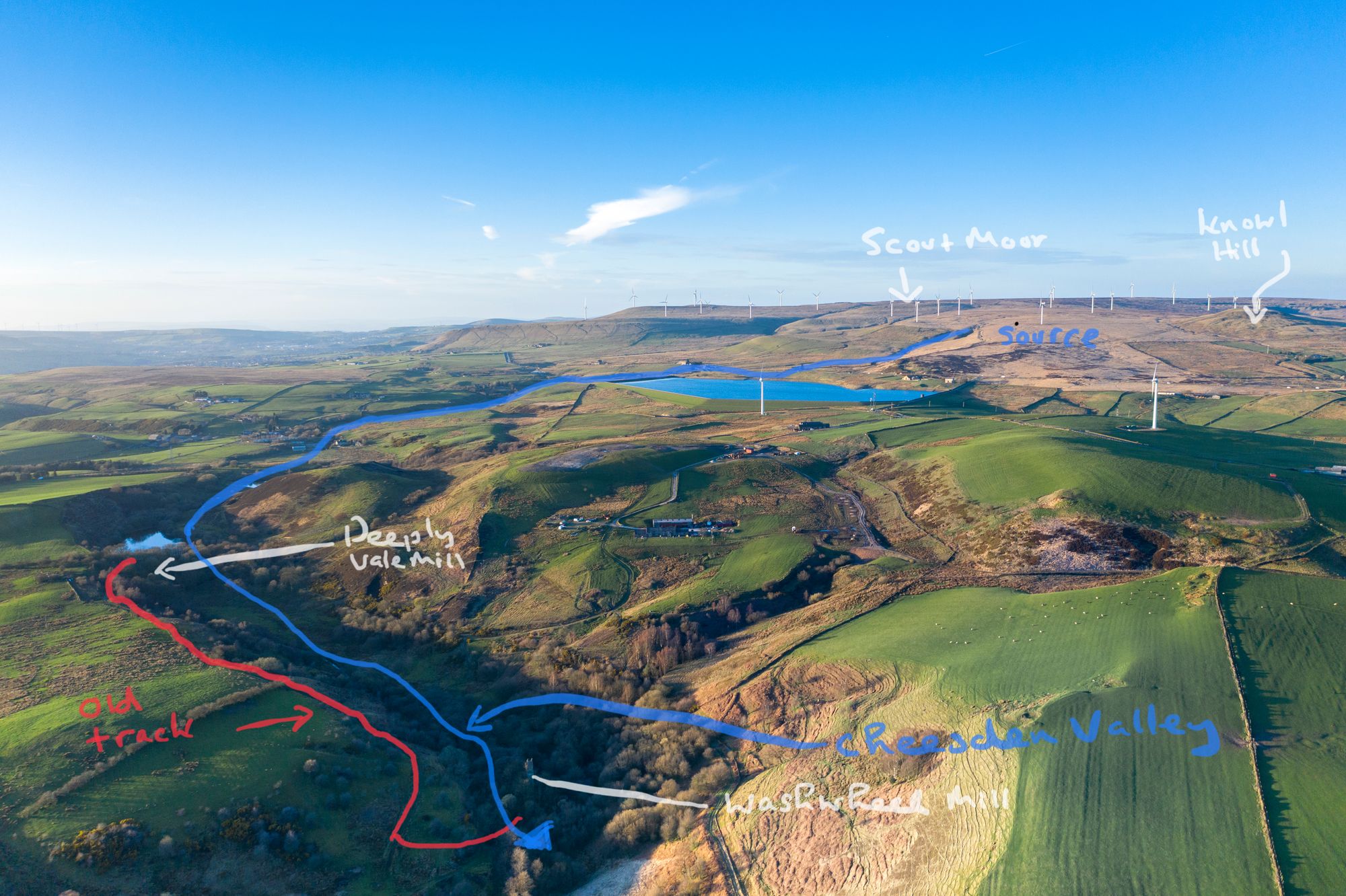 Out in Cheesden, in the Rossendale Hills, there is a track deep-cut into the hillside which arches the distance between a brace of mouldering Regency mills sat within the valley basin.
