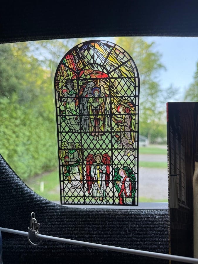 I have known that same intensity in other exalted places where colour is held captive within traceried bounds. Watching Tom Denny at work in his studio, I saw how an artist can transfer mood onto glass: how ochres and blues, when placed with intention, can summon sorrow or consolation. I wrote then that Denny’s work was “a place where poetry meets pigment, where memory is made radiant” - and I felt it again on this journey.