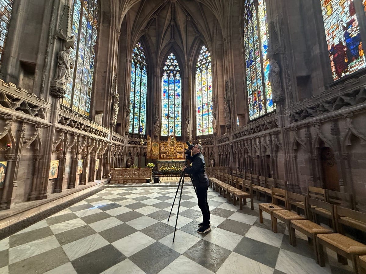 It is a rare circumstance to travel in a short span of time and, through photography and art, become immersed in a single, resounding theme. This spring, in service of Janet Gough’s forthcoming book Divine Light: The Stained Glass of England’s Cathedrals, I found myself bathing in coloured light during an intense period of photography, capturing the stained glass of seven cathedrals and one royal peculiar across the length and breadth of the country.