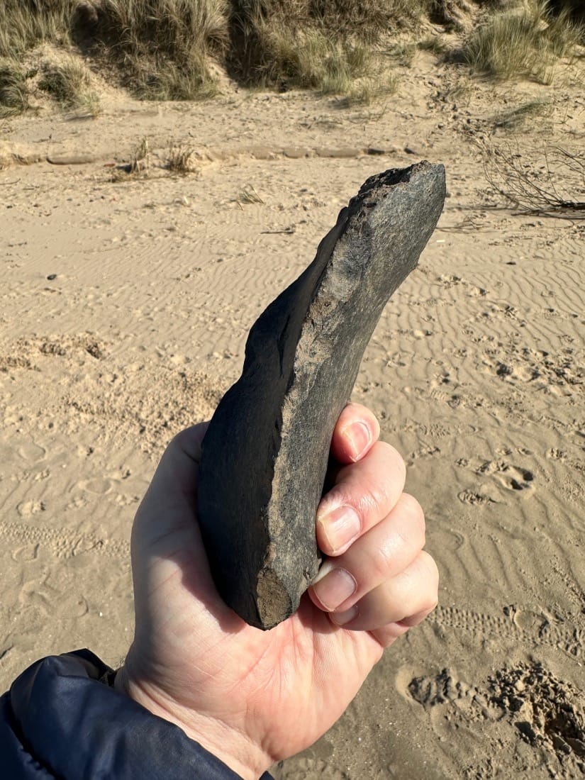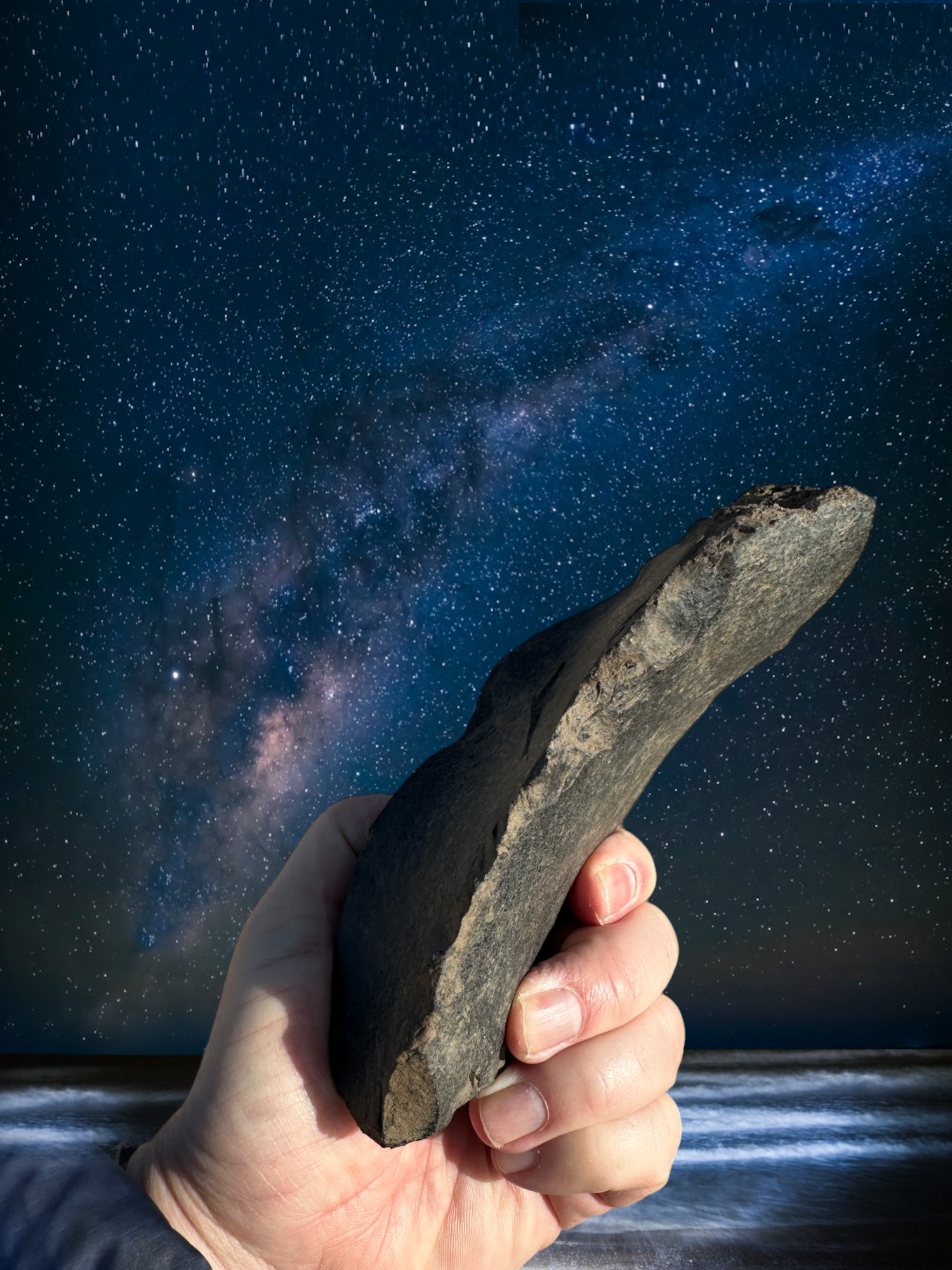 Not of clay or commerce, nor native to this coastal realm; it is something imported, something knapped and shaped millennia ago - crafted to cut hide or meat. I pick it up and a sense of belonging washes over me. Made for my right hand, it rhymes the curve of the maker’s palm, echoes the swirl of the brick bank and mirrors the arc of our galaxy.