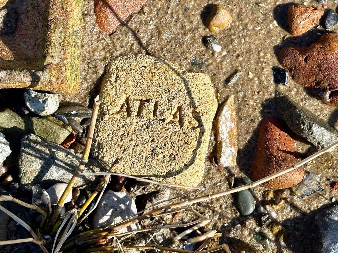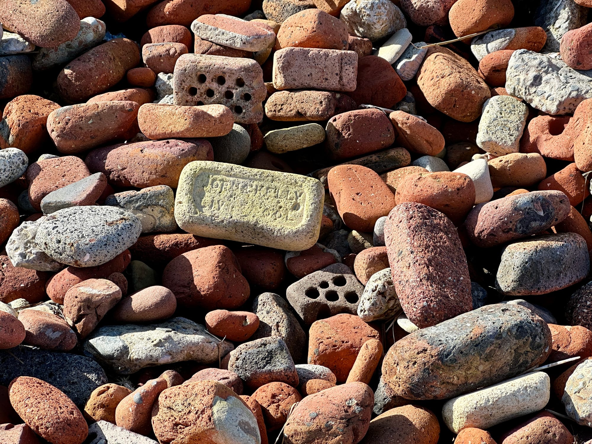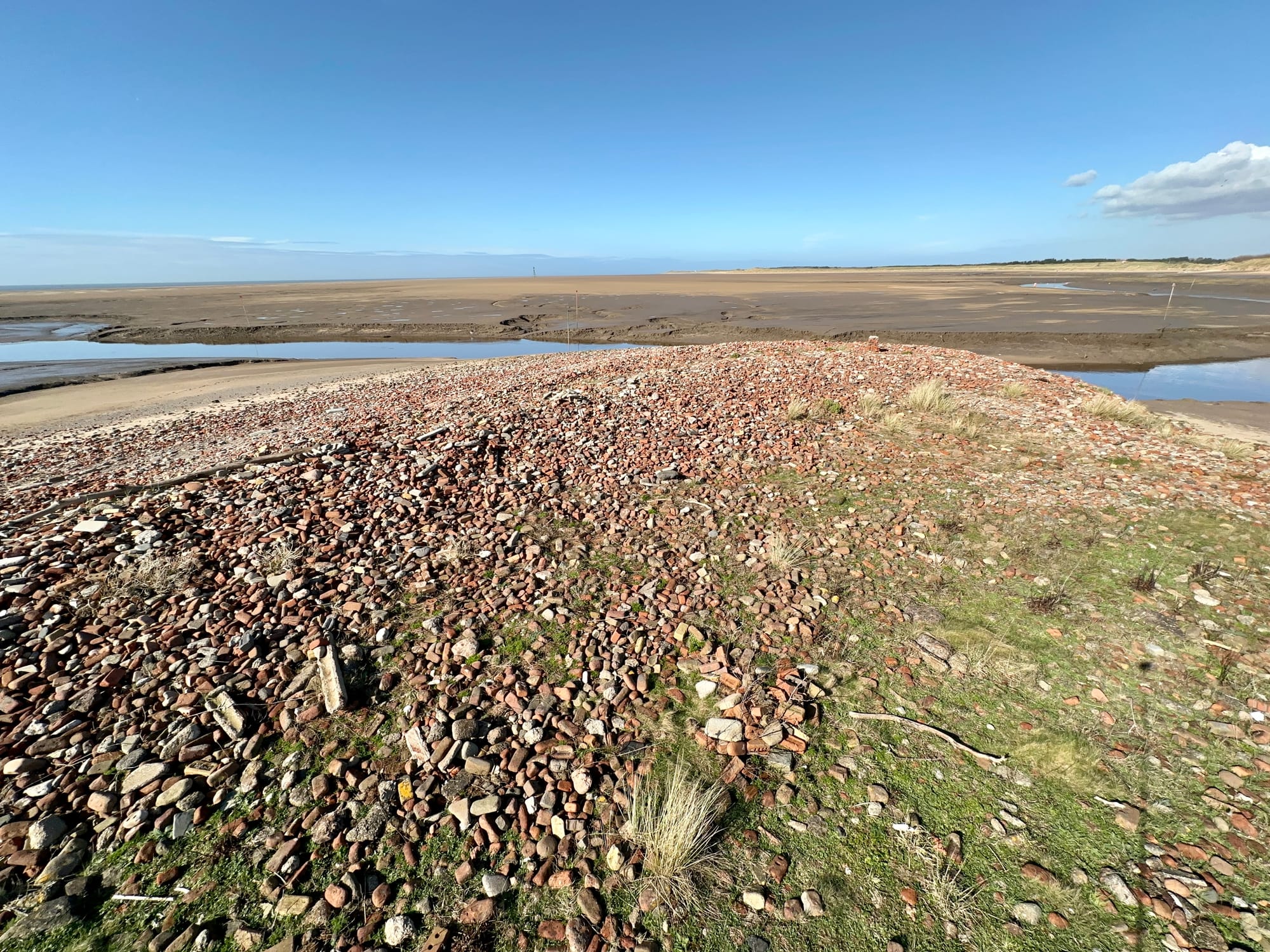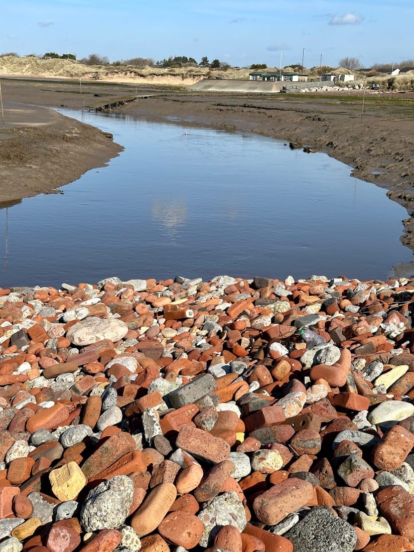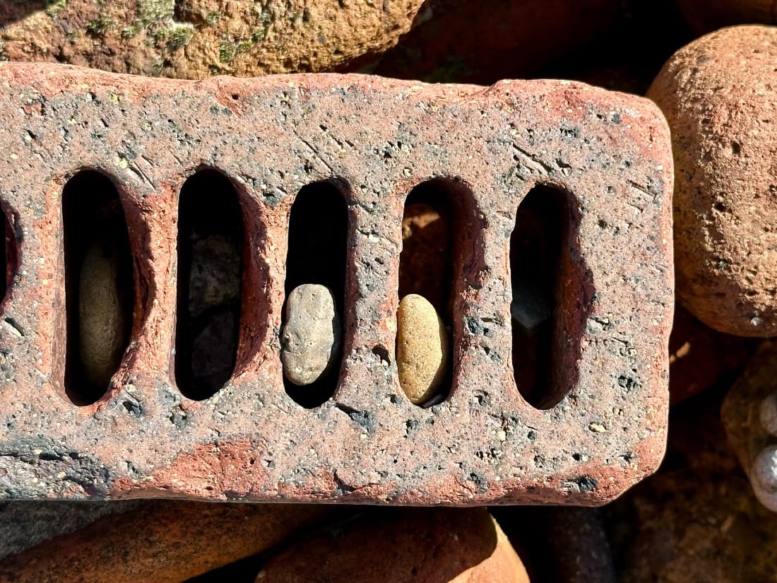 I come across a brick bank and explore it. I’m a brickonaut. I bask in the joy of the fractal patterns, but the wonder is punctured by the sadness of it all, until I spot something beneath the spit - a brick circle.
