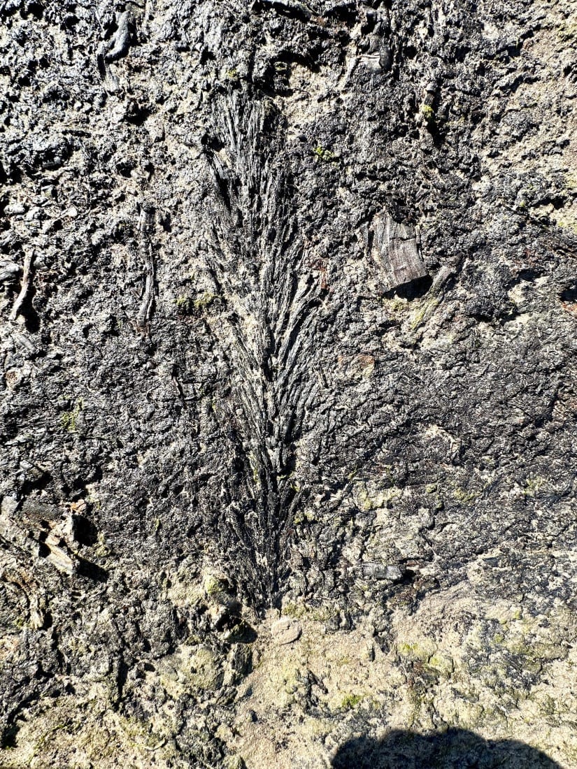 In the petrified peat base are imprints of flora and fauna.