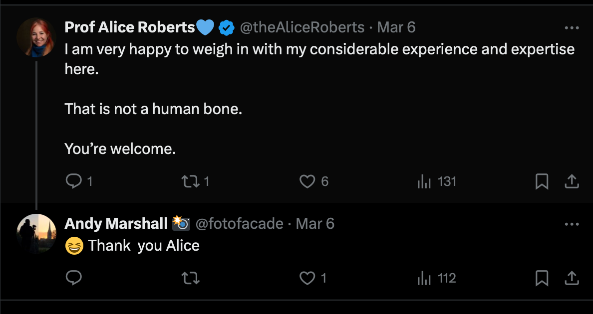 And with the same anticipation of Lance and Andy from the Detectorists, I reached out on social media about the tar black artefact (and hoped that Prof Alice Roberts might reply).