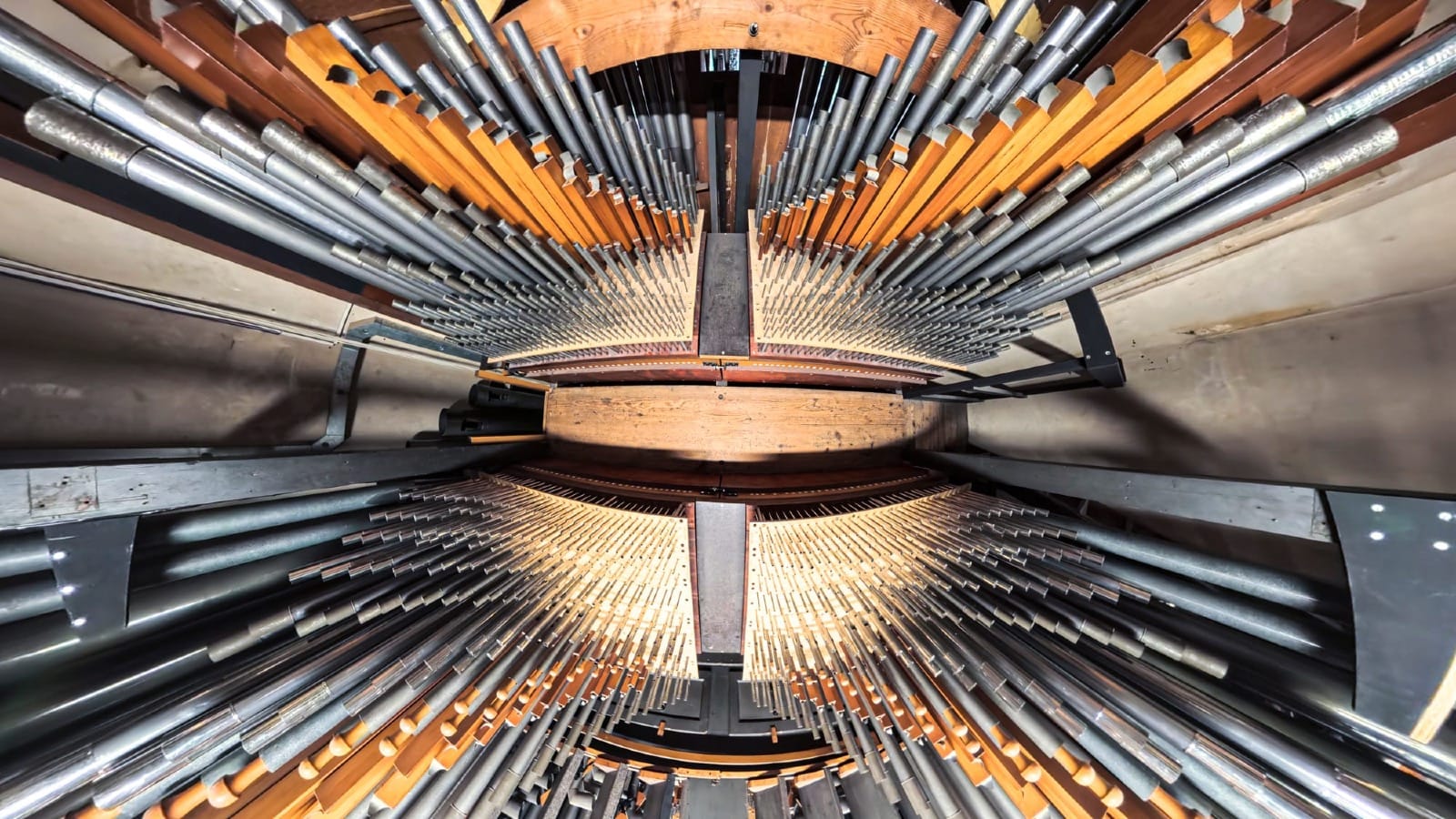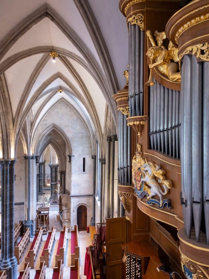 There, set high on the north side, is the organ case — its pipes poised in silence. And I realise I’m not just at the heart of geometry, form and light, but also at the auditory fulcrum of the building — the point where sound, space, time and place converge.