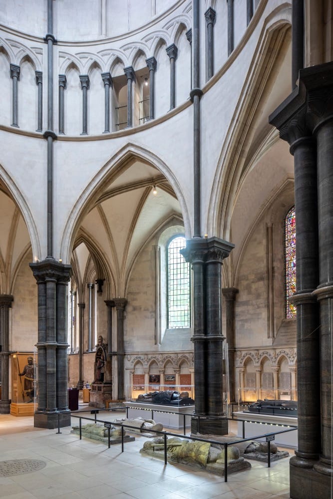 I’m garlanded by Purbeck and sandstone sentinels in the form of some of the most well-known effigies in the country. These stone figures have long captured the public imagination.