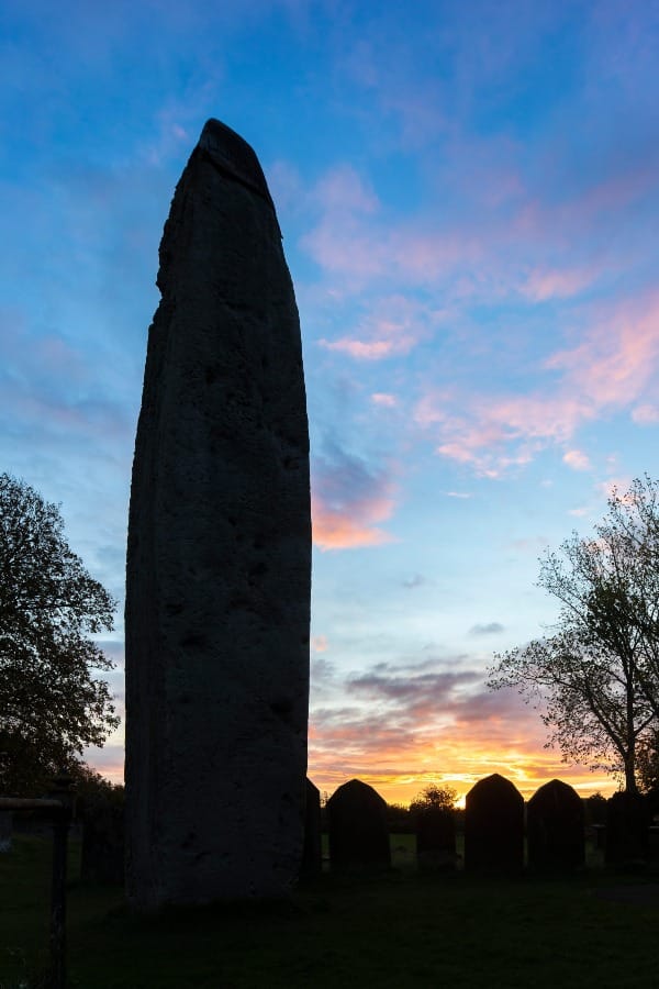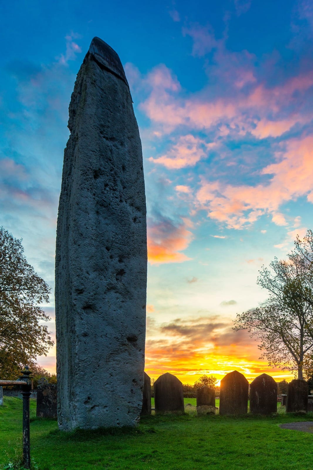 The standing stone before me has occupied this spot for around 4,500 years. It weighs forty tonnes and rises to nearly eight metres (and almost the same length beneath the ground). Across the surrounding fields lies a ritual landscape: the traces of four cursus monuments - long, parallel earthworks that once framed processions or gatherings. All of them converge here, at the monolith.