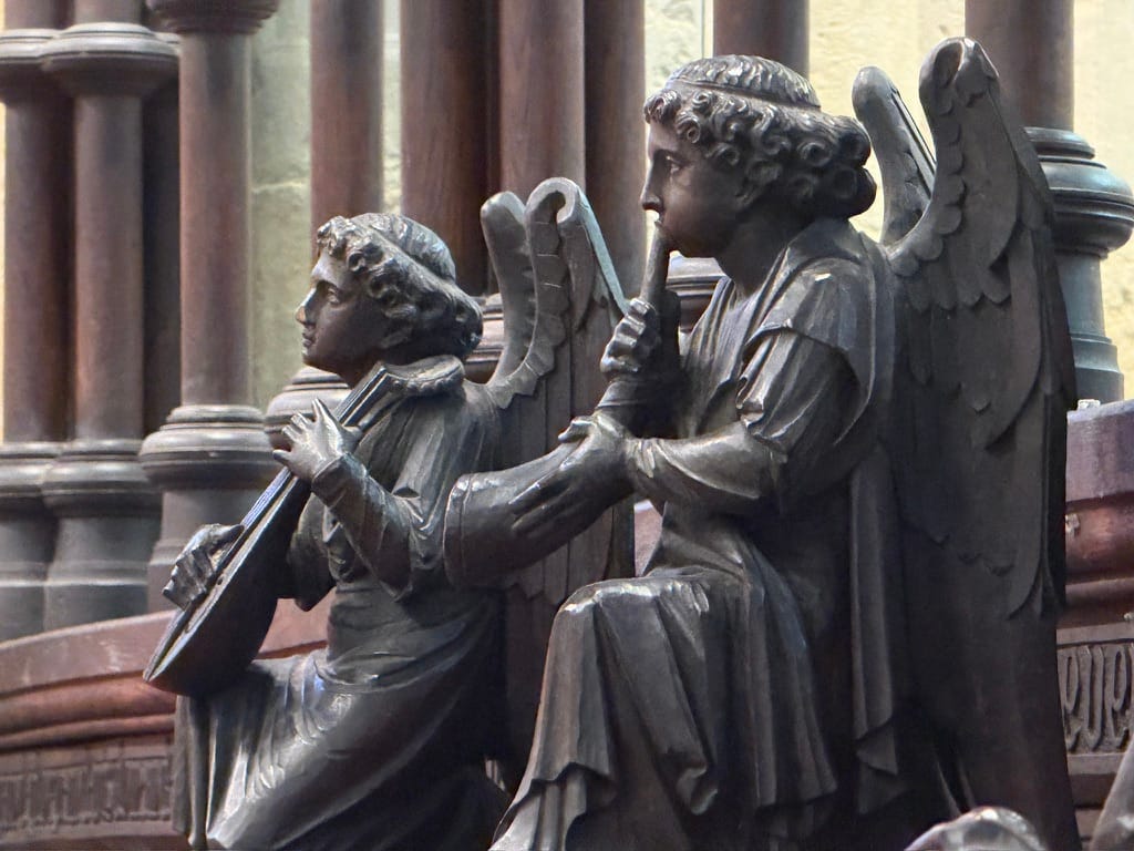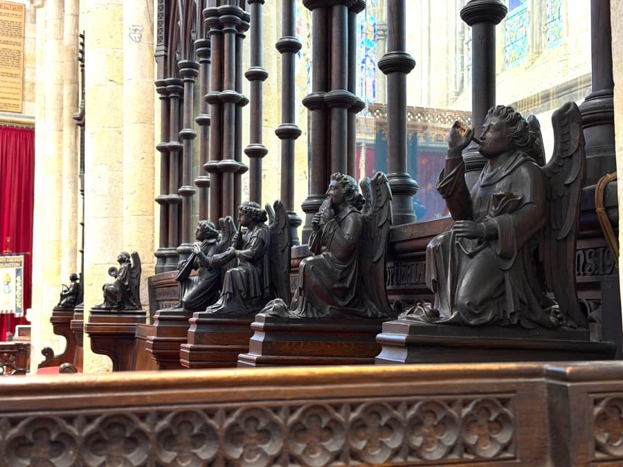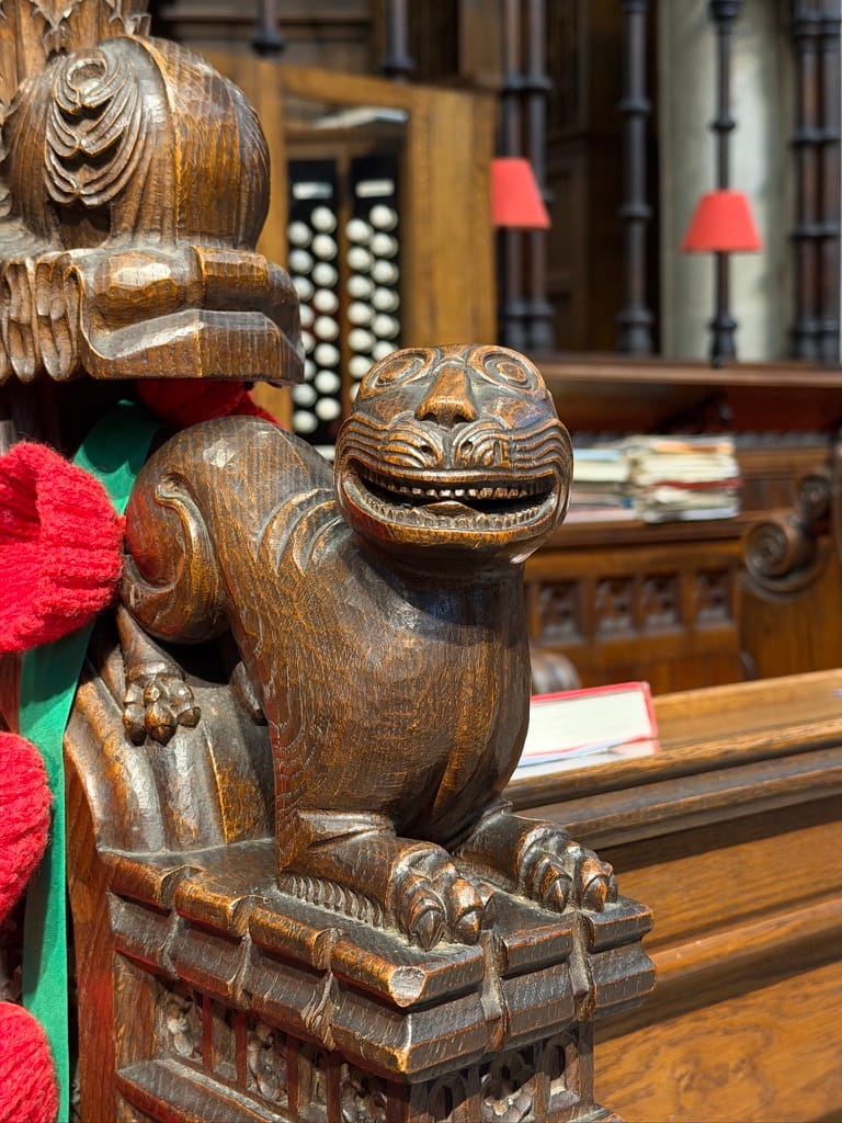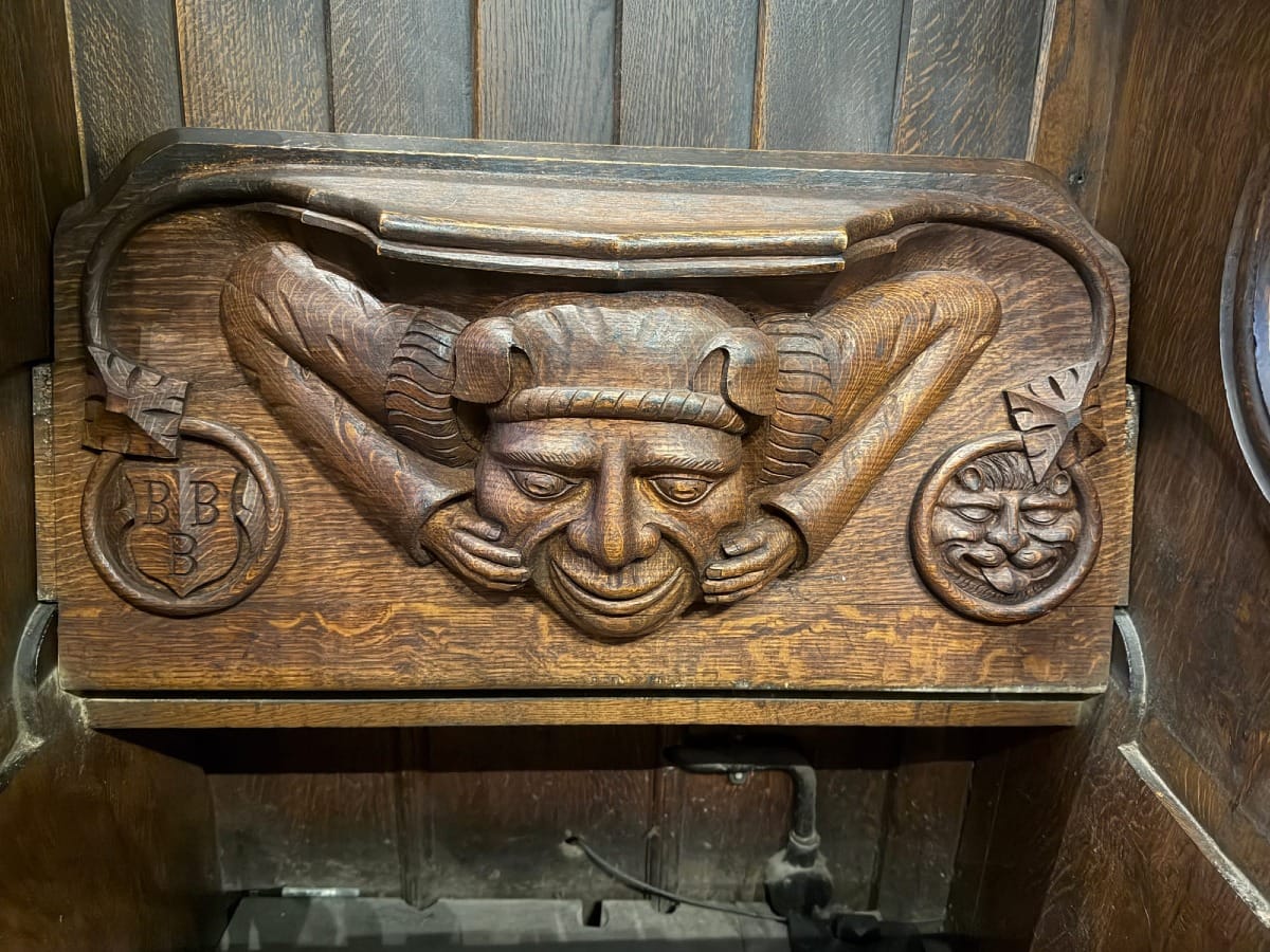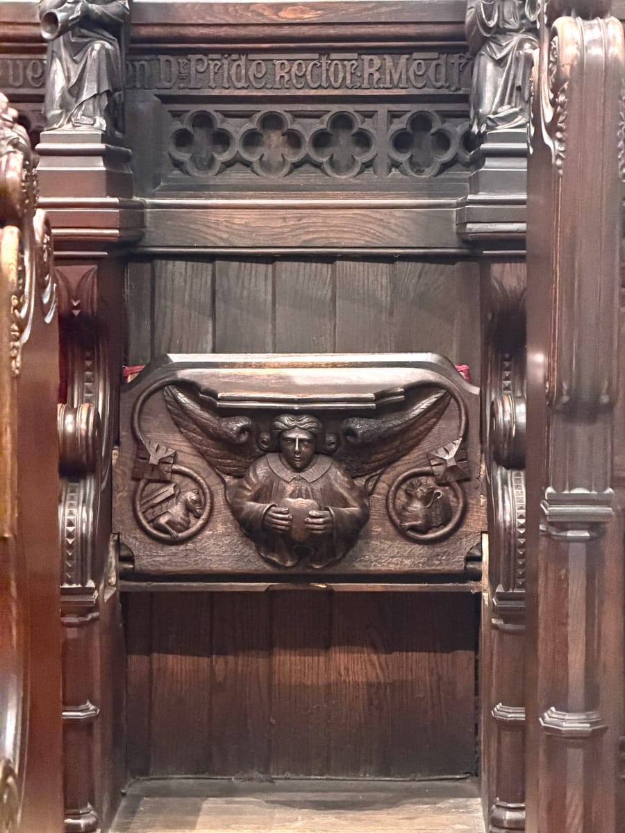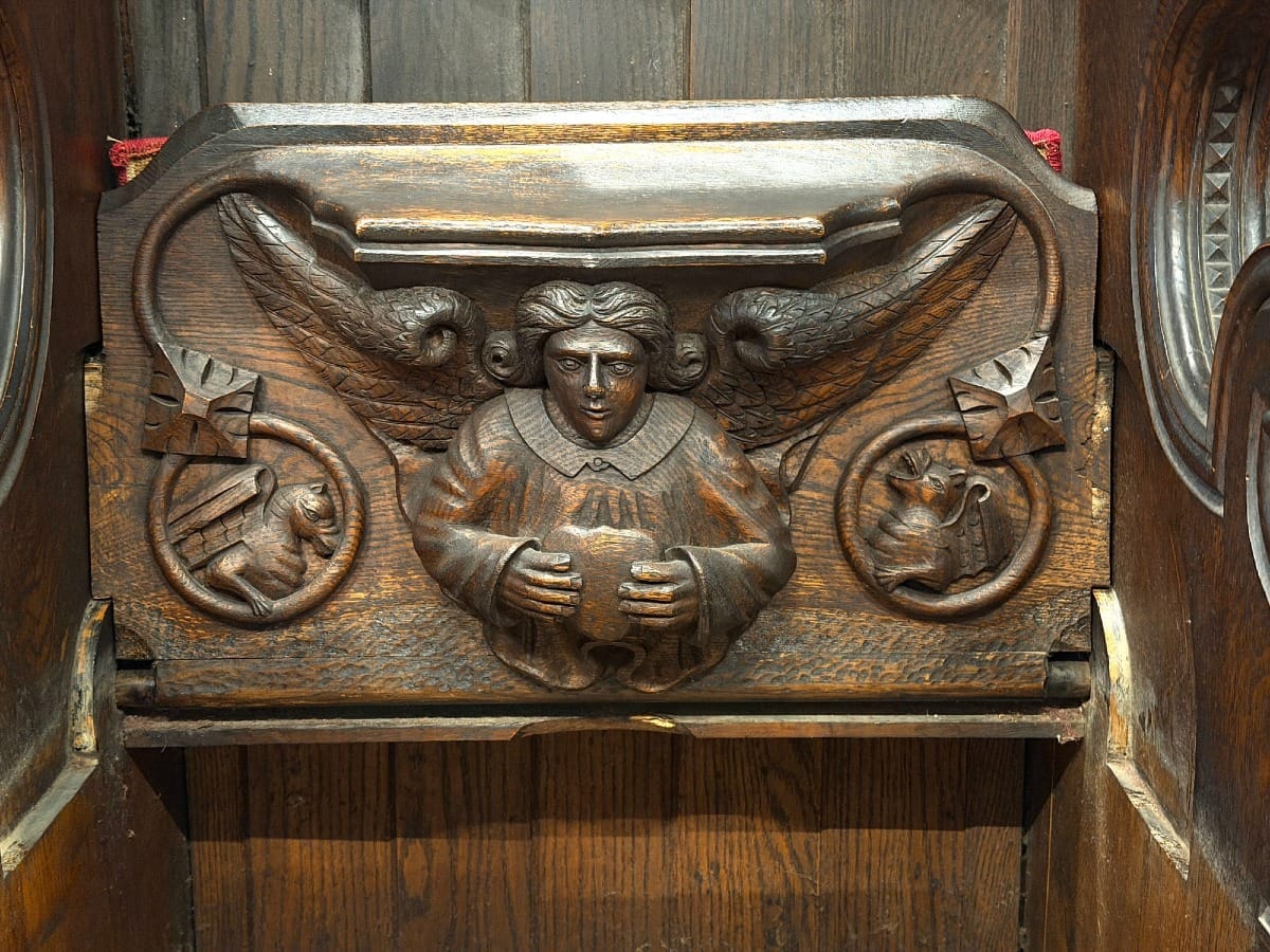 In the choir stalls there some lovely finial carvings as well as two surviving misericords.