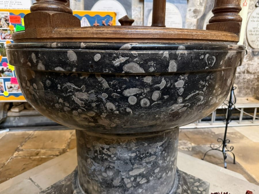 The font is a joy - made of Frosterley Marble which is a fossil rich limestone from County Durham - full of crinoid fossils. I took the advice of Rainer Maria Rilke and looked at the smaller things.