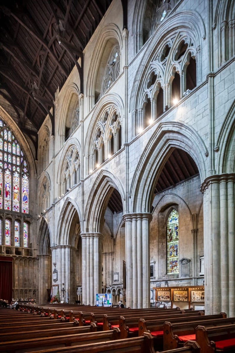 Bridlington Priory, founded around 1113 as an Augustinian house, was once one of the largest and most influential monastic centres in Yorkshire. Although much of the medieval complex was lost after the Dissolution, the surviving nave hints at its former grandeur. Stretching over 140 feet in length and soaring to a striking height, the nave is an extraordinary example of Early English Gothic ambition.