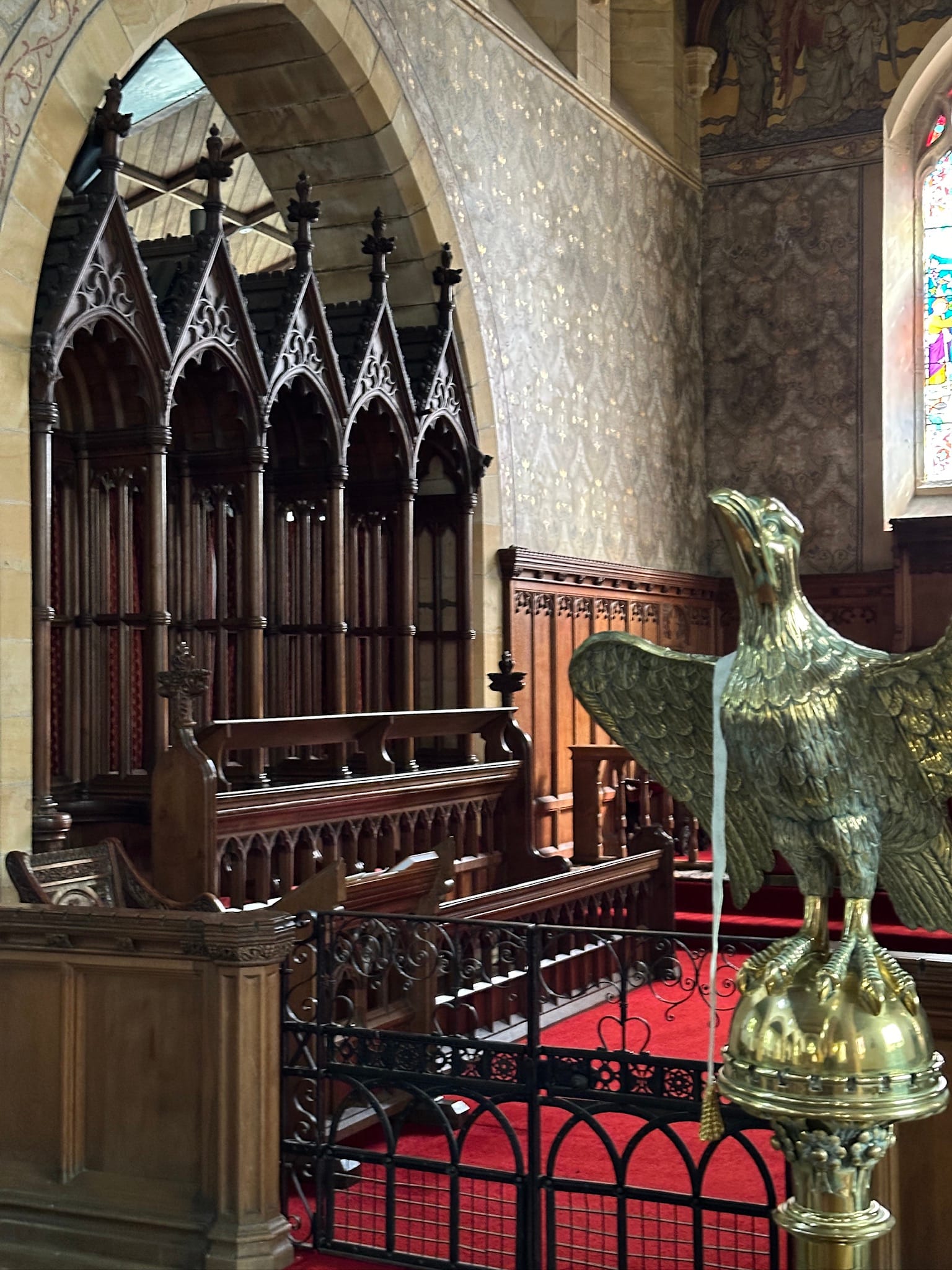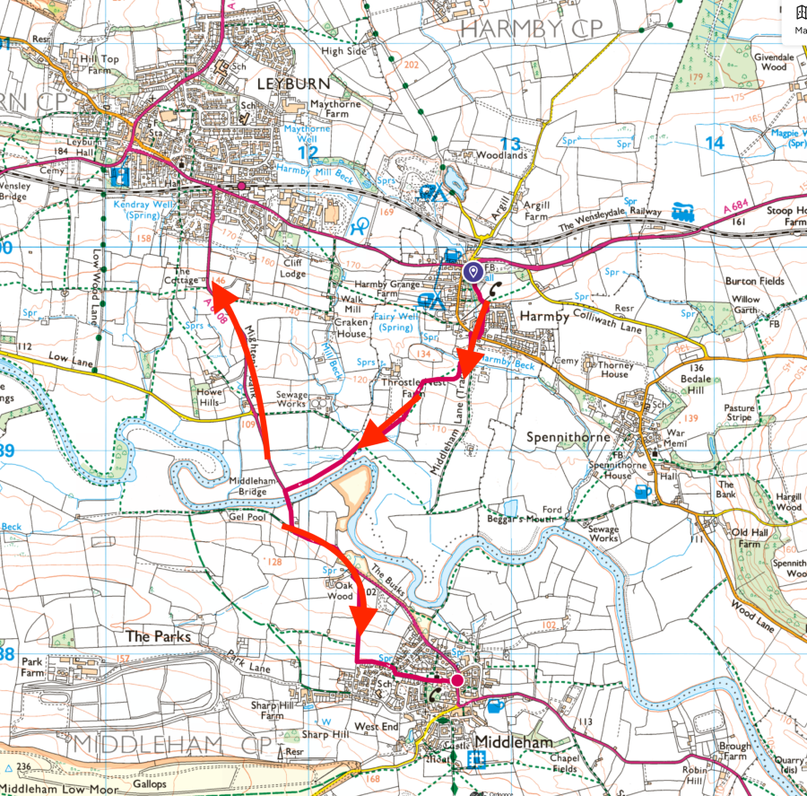 I took the public footpaths from Harmby Falls (there is limited parking there) over the River Ure and into the town. There is a short walk along a main road before it takes you into the town via the magical portal of St. Mary and Alkeda. From Middleham I caught the bus into Leyburn.