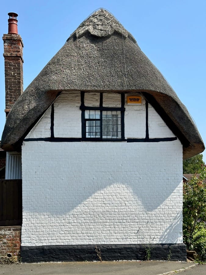 A little bit of lovely thatched vernacular from Stewkley in Buckinghamshire. C17th timber framed and infilled with header bond.