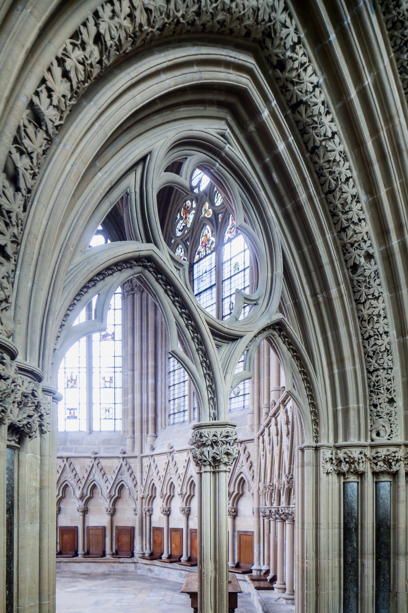 As the leaves unfurled in early spring, I was overwhelmed by the leaves of Southwell and the magnificent sight of spandrels of light through the chapter house tracery.