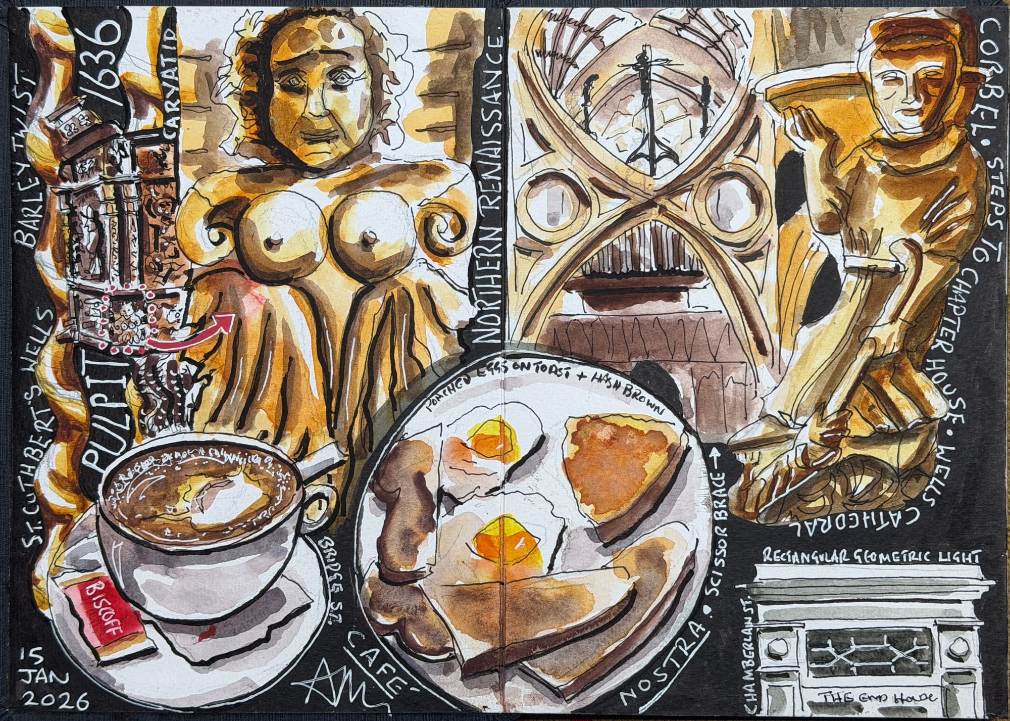 The above is a visual diary of my day in Wells and, after breakfast at Cafe Nostra, I head over to St Cuthbert’s. St Cuthbert’s is a parish church on a grand scale and has a remarkable interior.