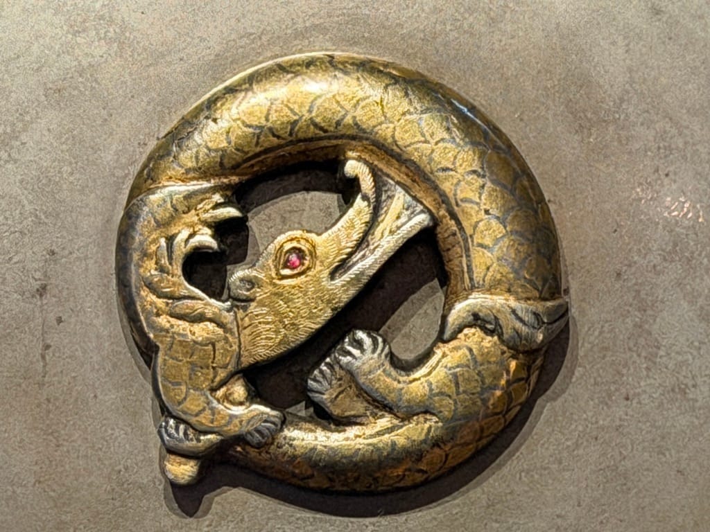 These patterns reverberate through the very best of our art: fluid lines, moving geometry, the S-curve, repeated, combined, folded back on itself. It appears in Britain’s Celtic (Insular) art, then is re-imagined through Christian visual culture. Distinct waves arrive with the Anglo-Saxons, then the Vikings.