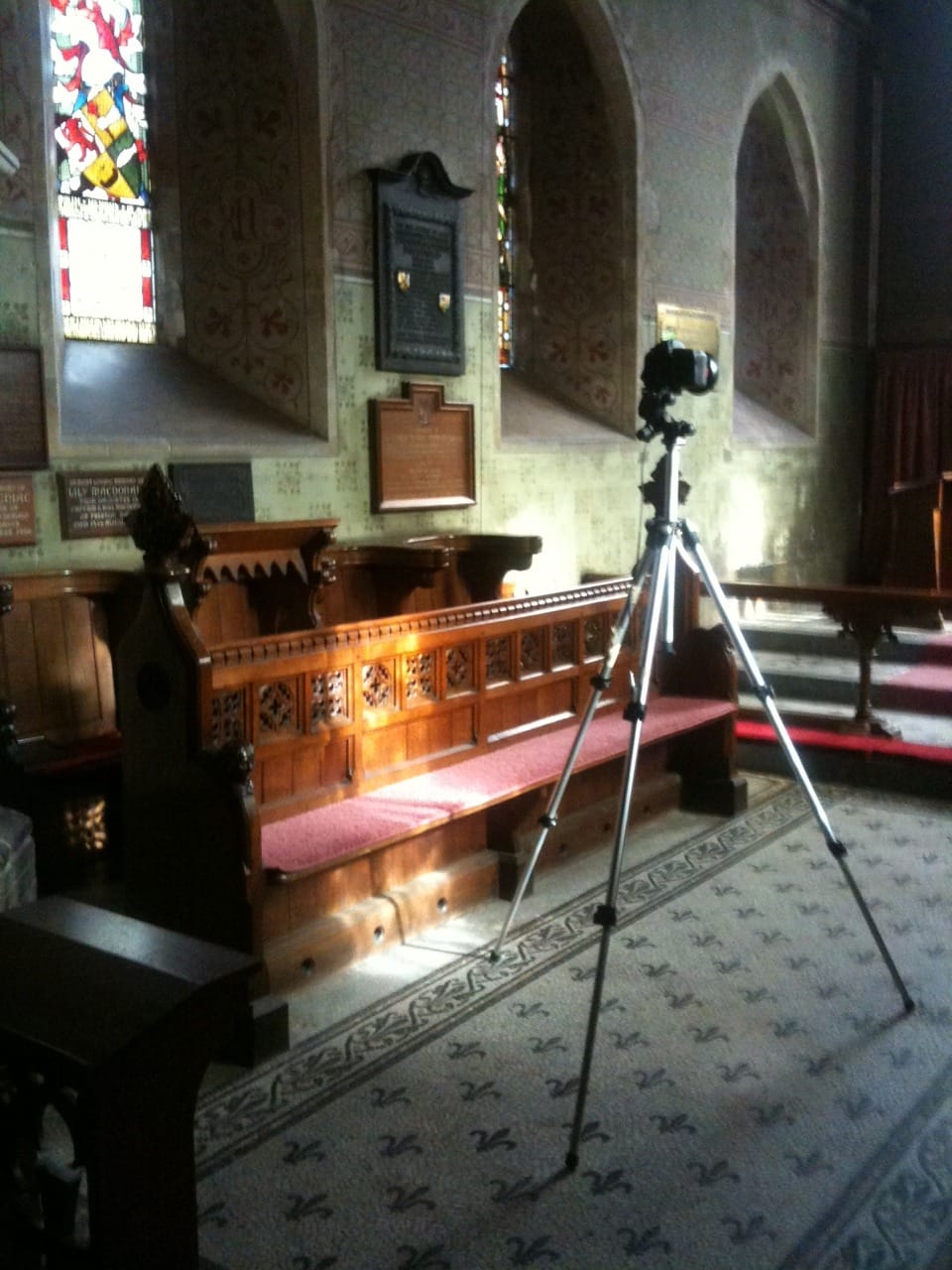 I was lucky enough to get a good day, and what joy to watch the sunlight briefly kiss the stiff leaf and then move on to caress the pews.