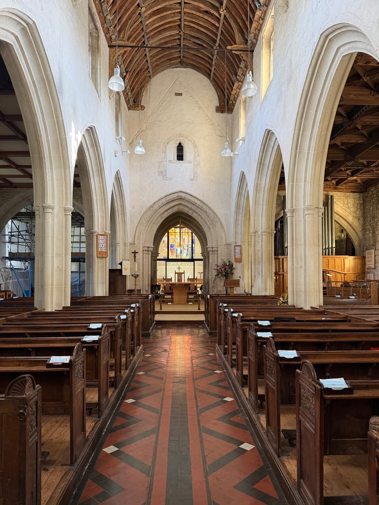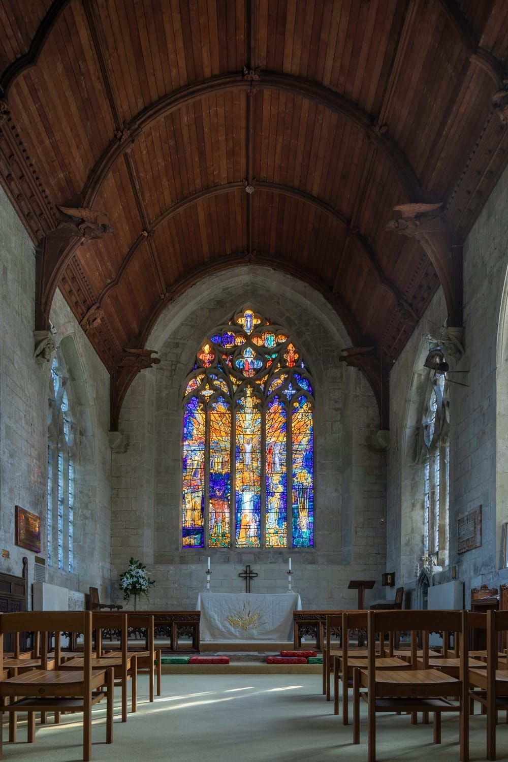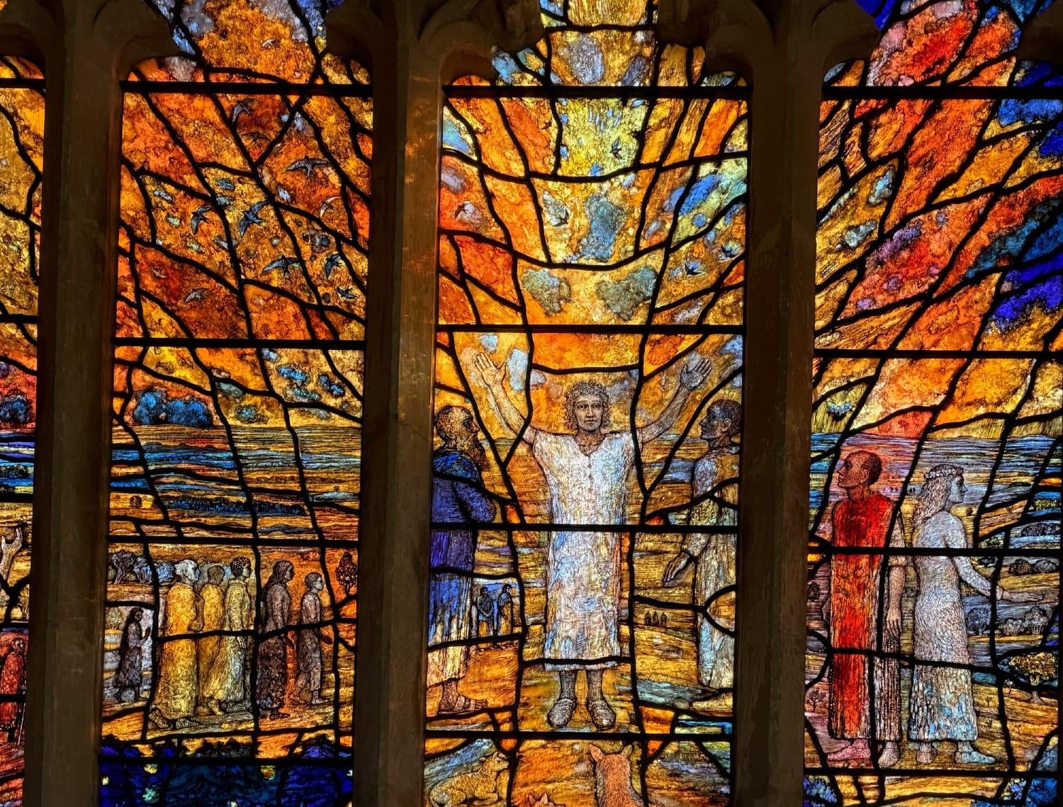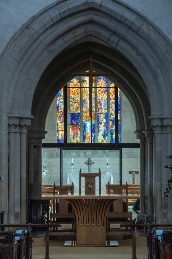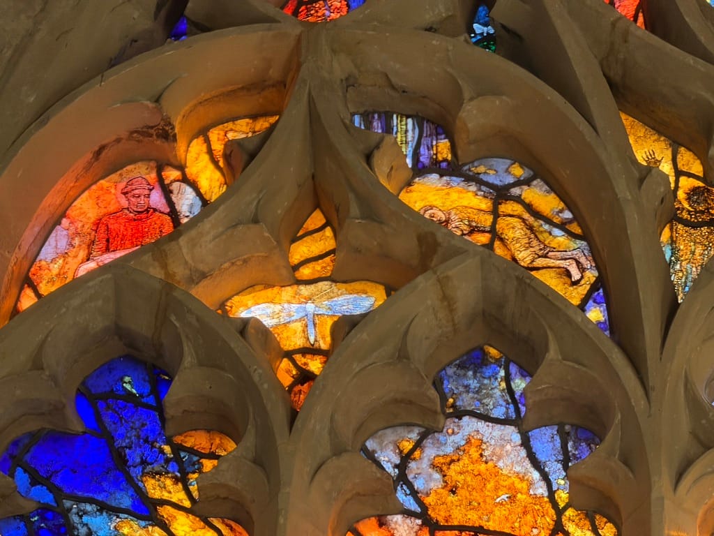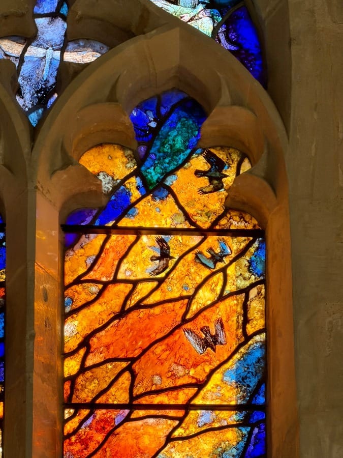 The glass has now been installed, and I’m here to see it for the first time. There’s a morning service, which gives me the chance to stop, sit, and settle into the window as it gathers light.