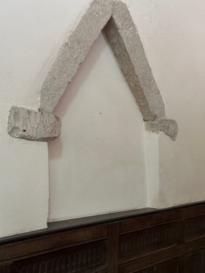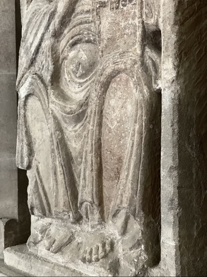 In this little church of scintillating Gothic, the Madonna is an anomaly. The stylistic references to Rome and the Byzantime are obvious. The mid to late Saxon period saw an increase in references to Rome and its material culture as a way of underpinning the legitimacy of kings. The insertion of the carving into the wall of the 'new' building helps keep the Anglo Saxon backstory alive through the material record.