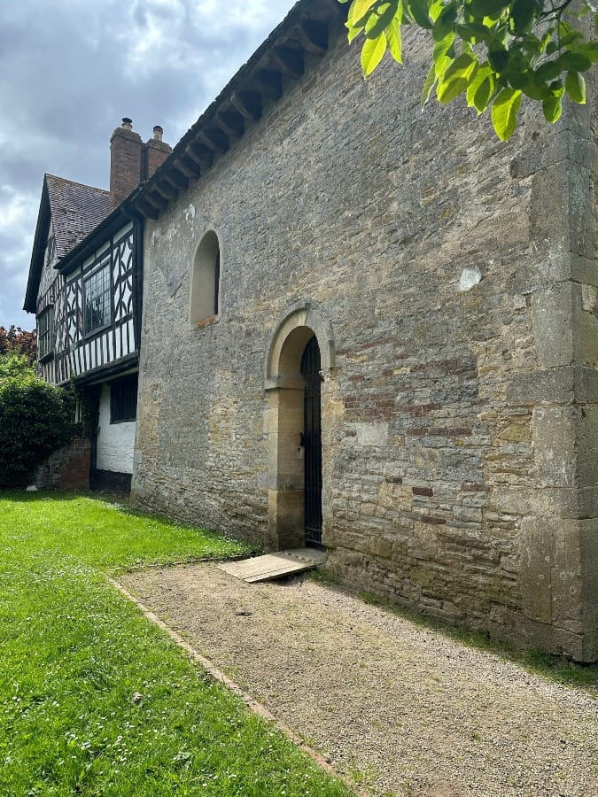 Just around the corner, out towards the flood plains of the River Severn is a timber framed building with a stone-built wing.