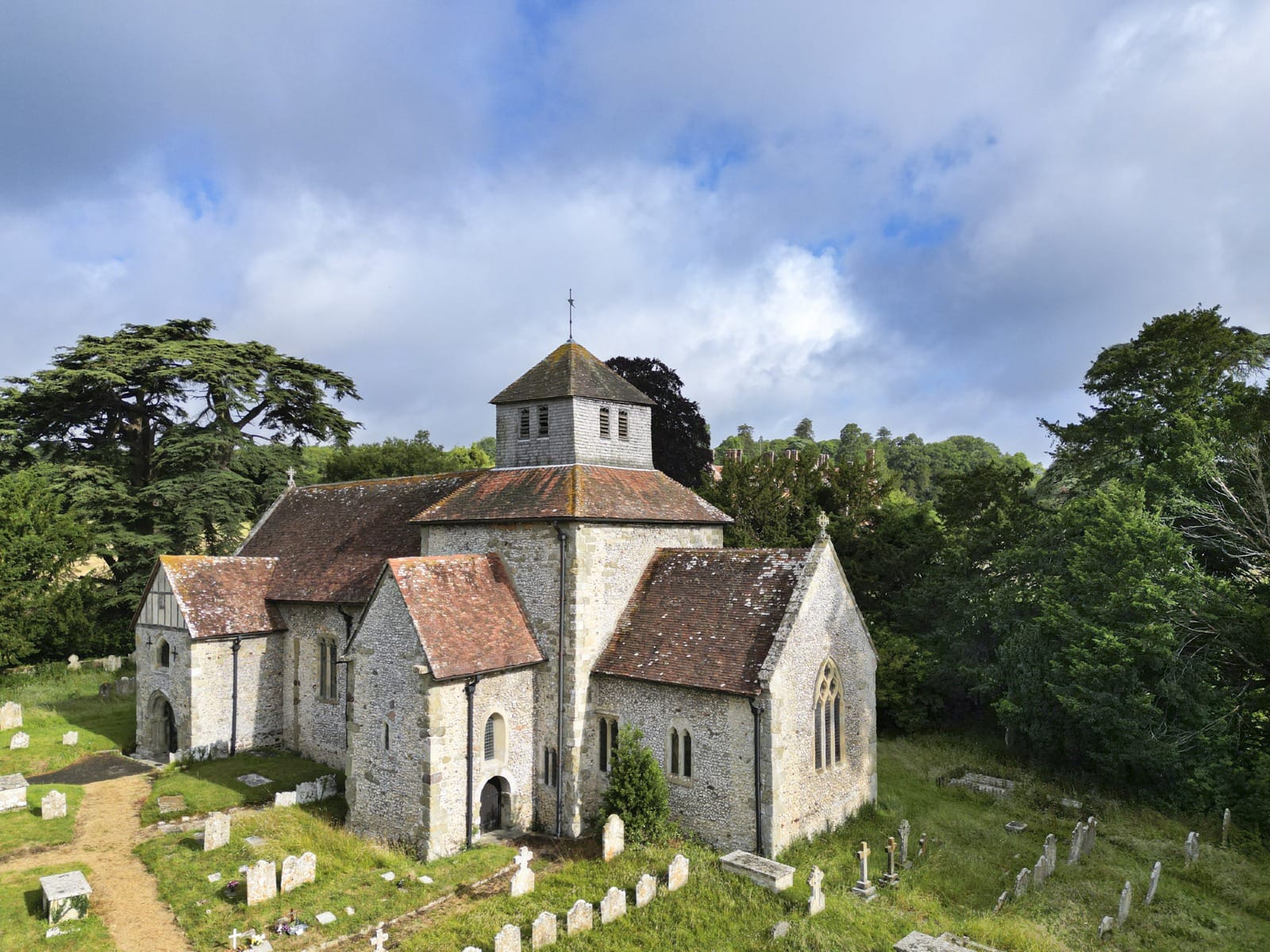 The church is built of Mixon stone (used by the Romans at Fishbourne), Top Chalk, Sarsen stone and Quarr stone rubble. The church is material witness to the pre-conquest world and the ensuing embossing of the post-conquest world of the Normans.