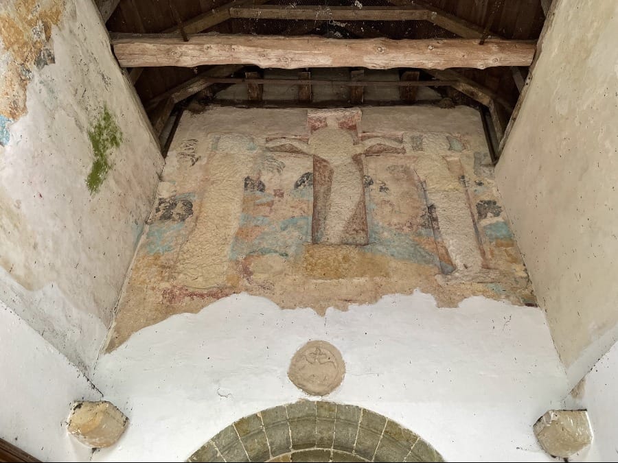 The gaping porch holds an Anglo Saxon Rood.