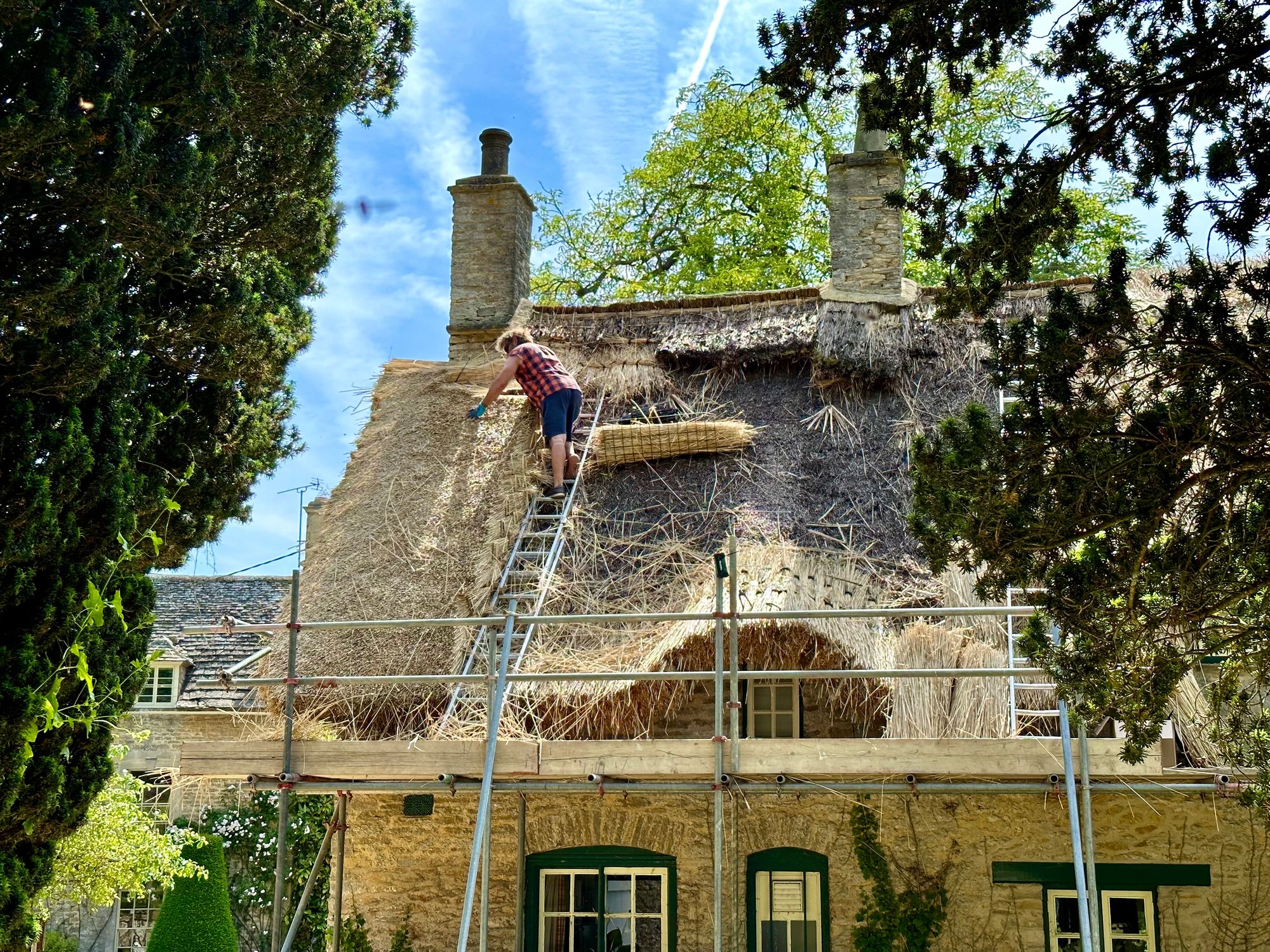 Thatcher at work in Broadwell, Oxfordshire.