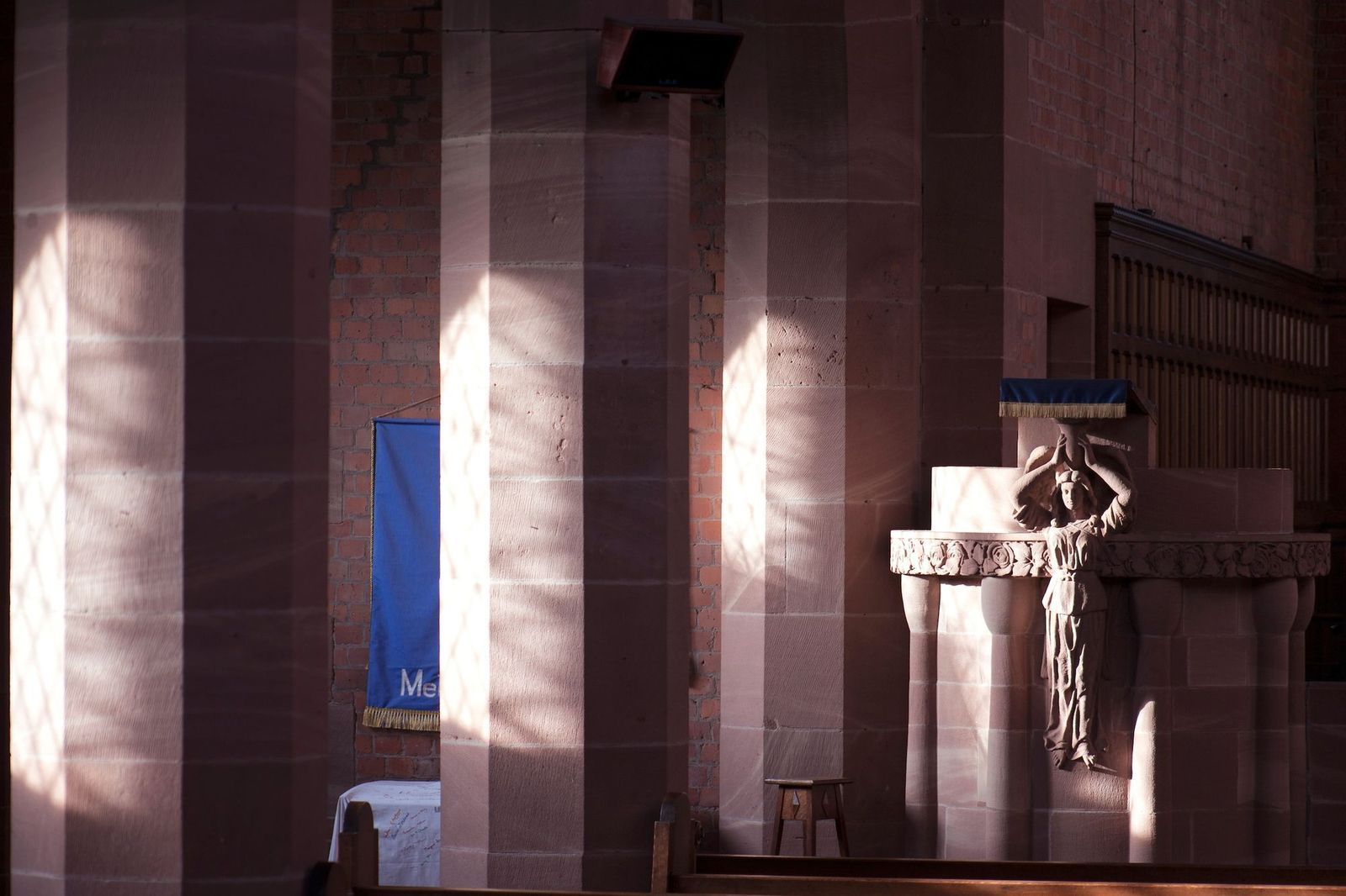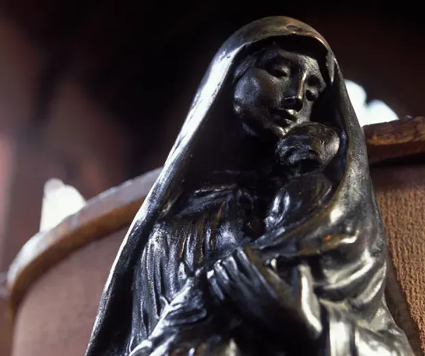 Inside the church is a font with a sculpture of a mother and child by Arts and Crafts artist, Stirling Lee. It's a striking sculpture that is full of humanity. It is so small in scale to the great nave it is situated in, but powerful beyond its size in its impact. I've been drawn to it over and over again. There is an overwhelming need to touch it and draw on its charisma.