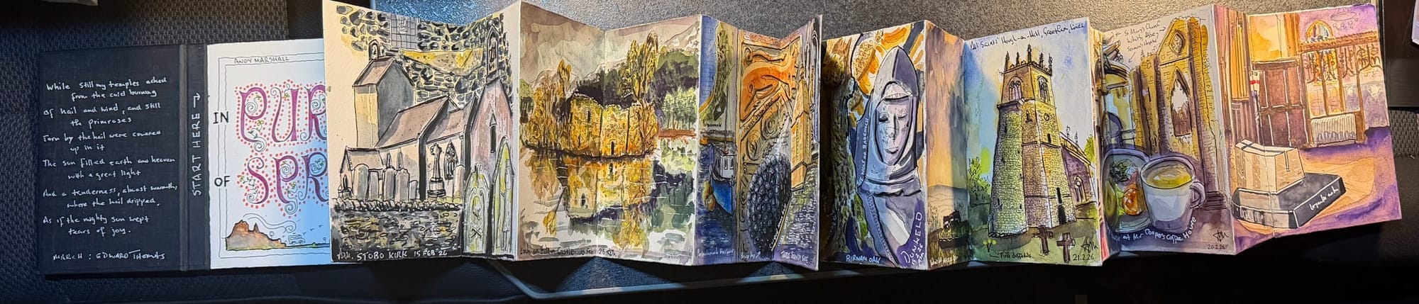 In February 2026, Andy Marshall set out from the Highlands of Scotland and travelled over 12 days into Cornwall. Every day he painted a watercolour of his experiences - and this is the final result.