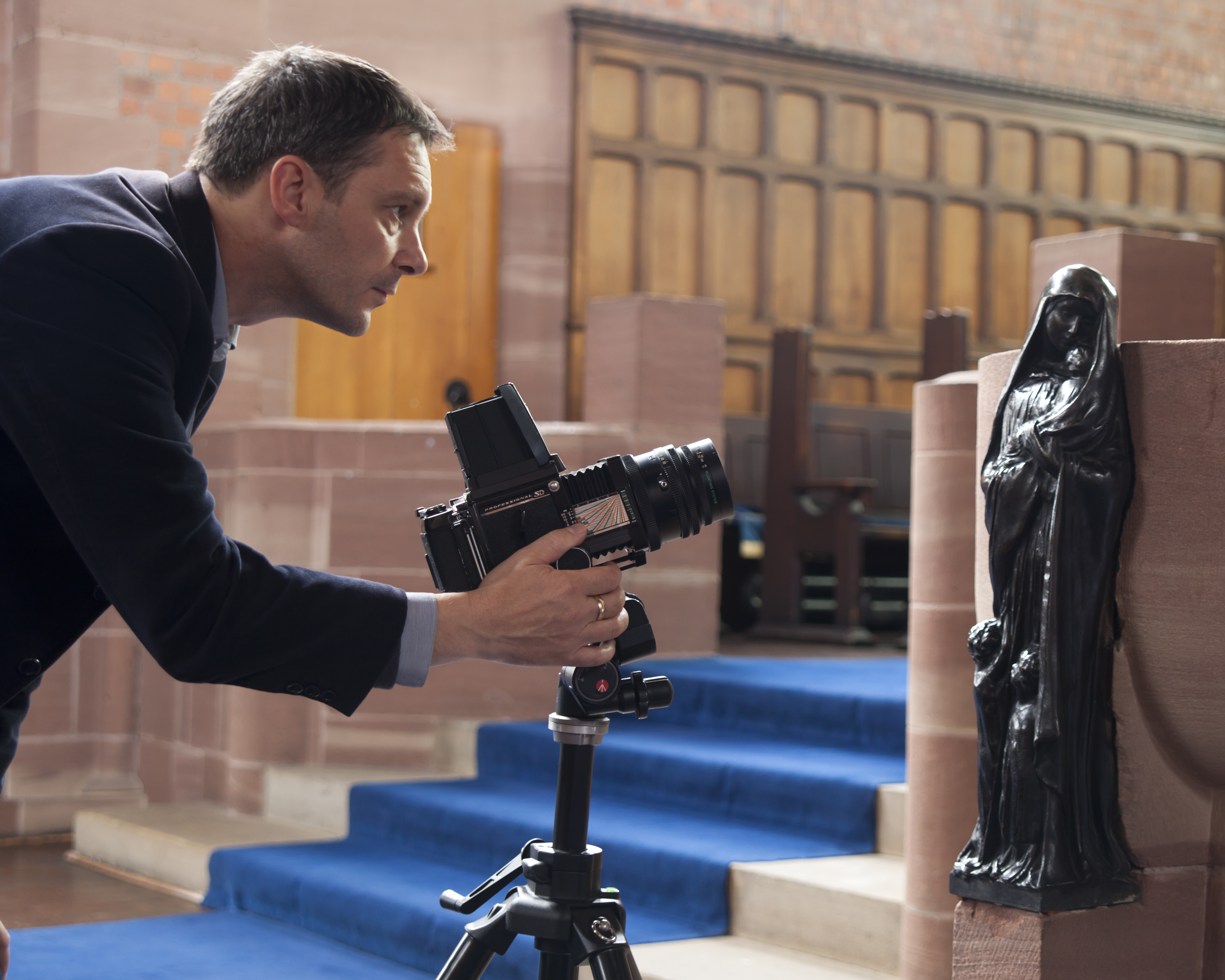 David was an academic with an artists soul. He was a far better photographer than I. When I needed to have some shots taken of me for a magazine article he volunteered to take them. We went to Long Street Methodist Church and he photographed me taking a photograph of the Stirling Lee Mother and Child.