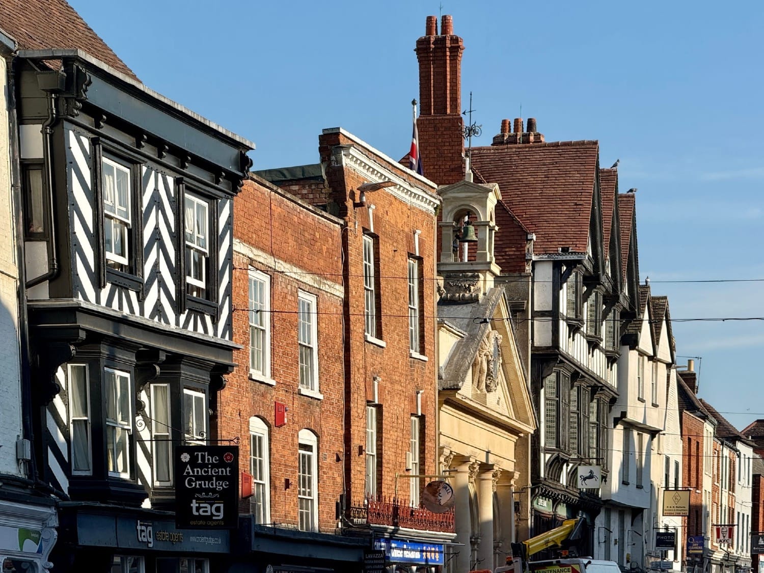 I wanted to go and see the Denny glass, but before that I walked a loop up the High Street and back down beside the River Severn.