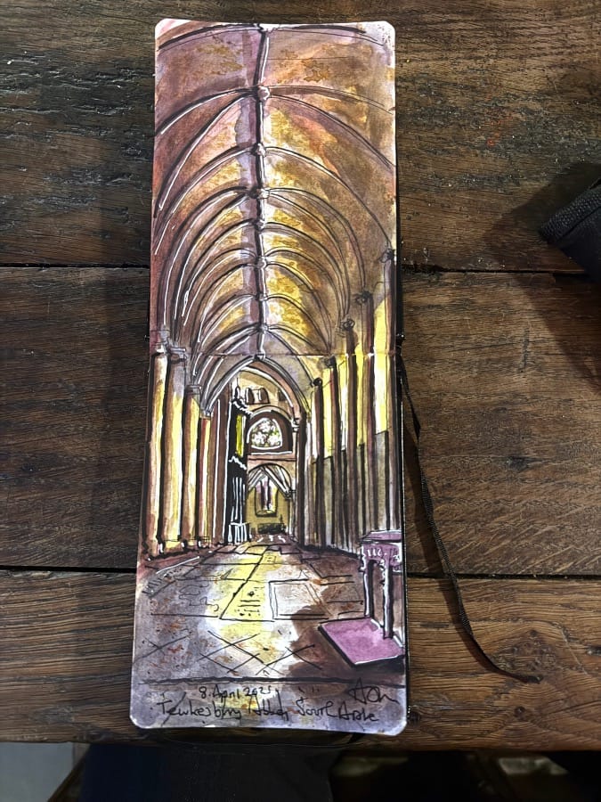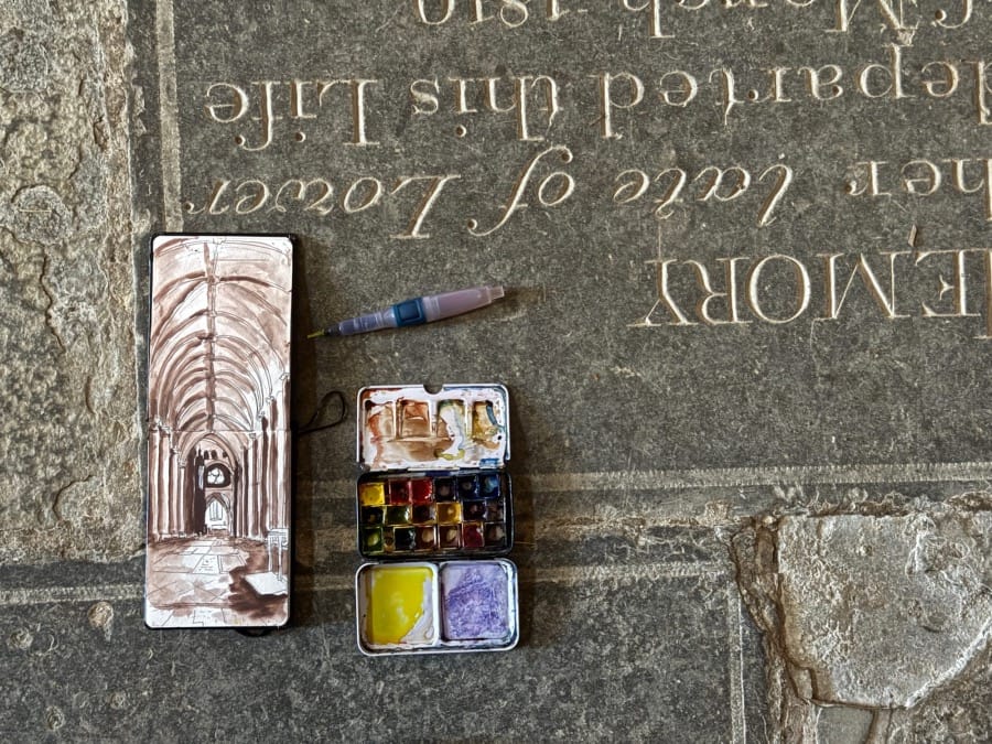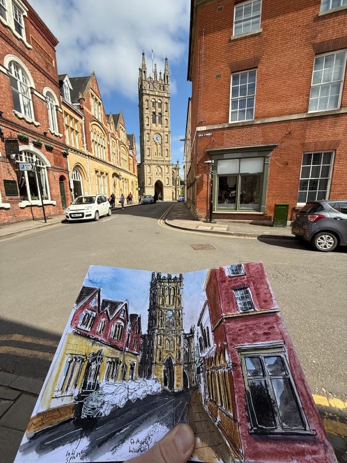 I also dropped into St. Mary's Warwick to pick up a book on The Beauchamp Chapel which has my photos inside. Quick sketch of the tower at St. Mary's (which has been shrouded in scaffolding for such a long time.)