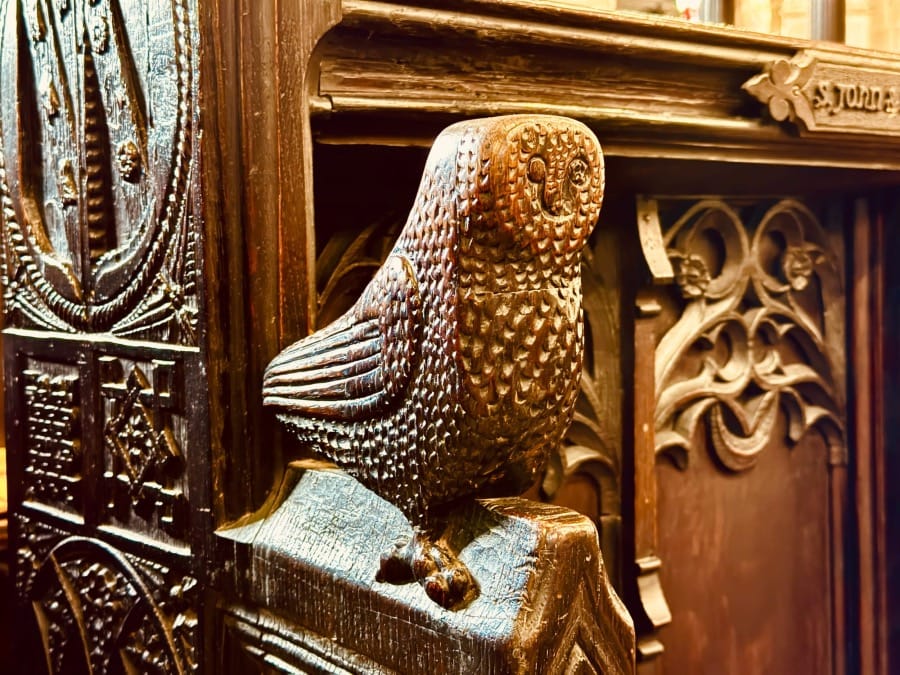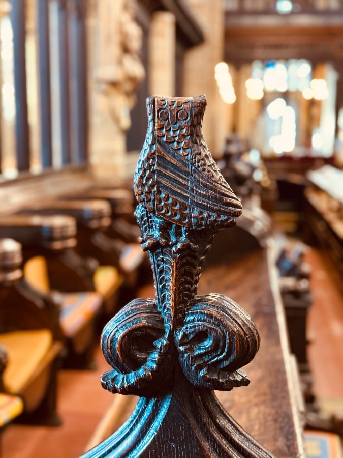 Also at Wakefield, I was particularly taken by a lovely carving of an owl on the choir stalls: