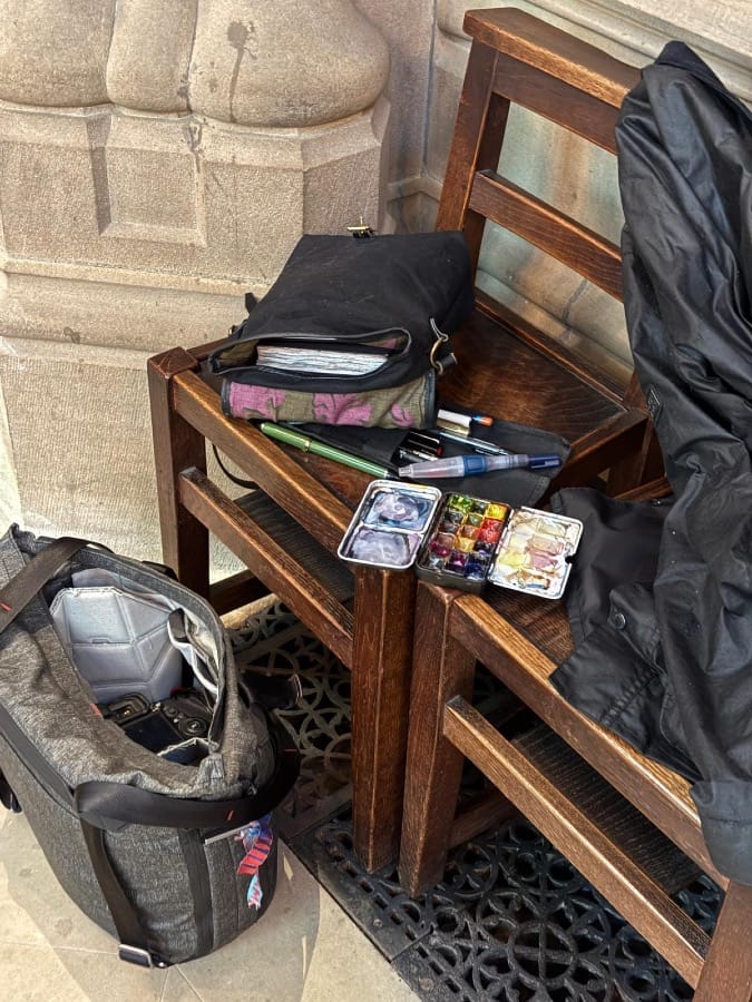 On my way out I was stoppered by a lovely buff Italianate building. Whilst I was sketching a bird left a message from above on the page. Not sure if that is good luck? Really enjoying working with the Art Graf limited palette.