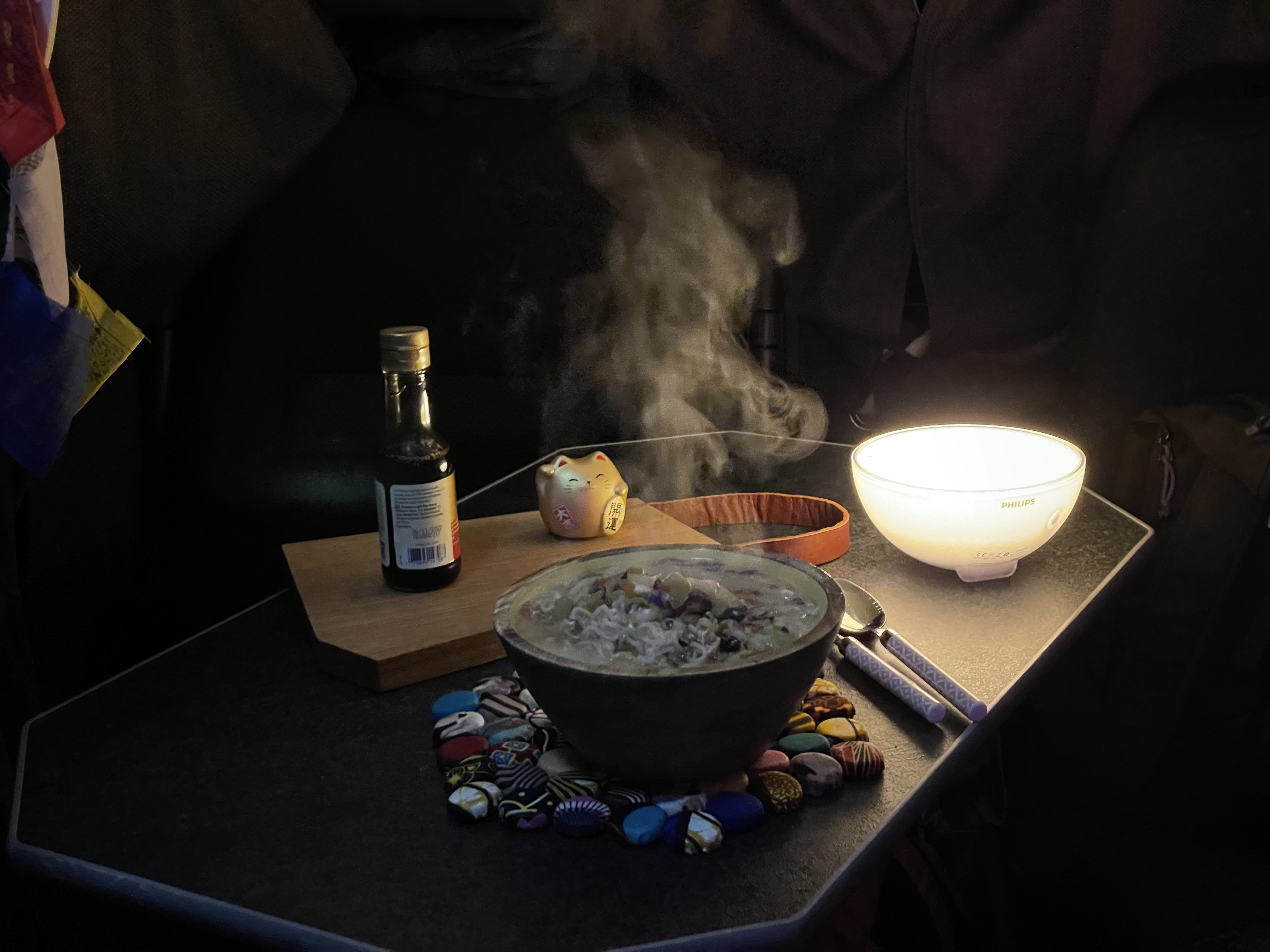 Ramen is one of the most wonderful hugs in a bowl for the winter months. Especially when the dark nights are closing in on the van. It was this pesky film that got me into it. Here's my take on this wonderful dish. Ingredients are for one.