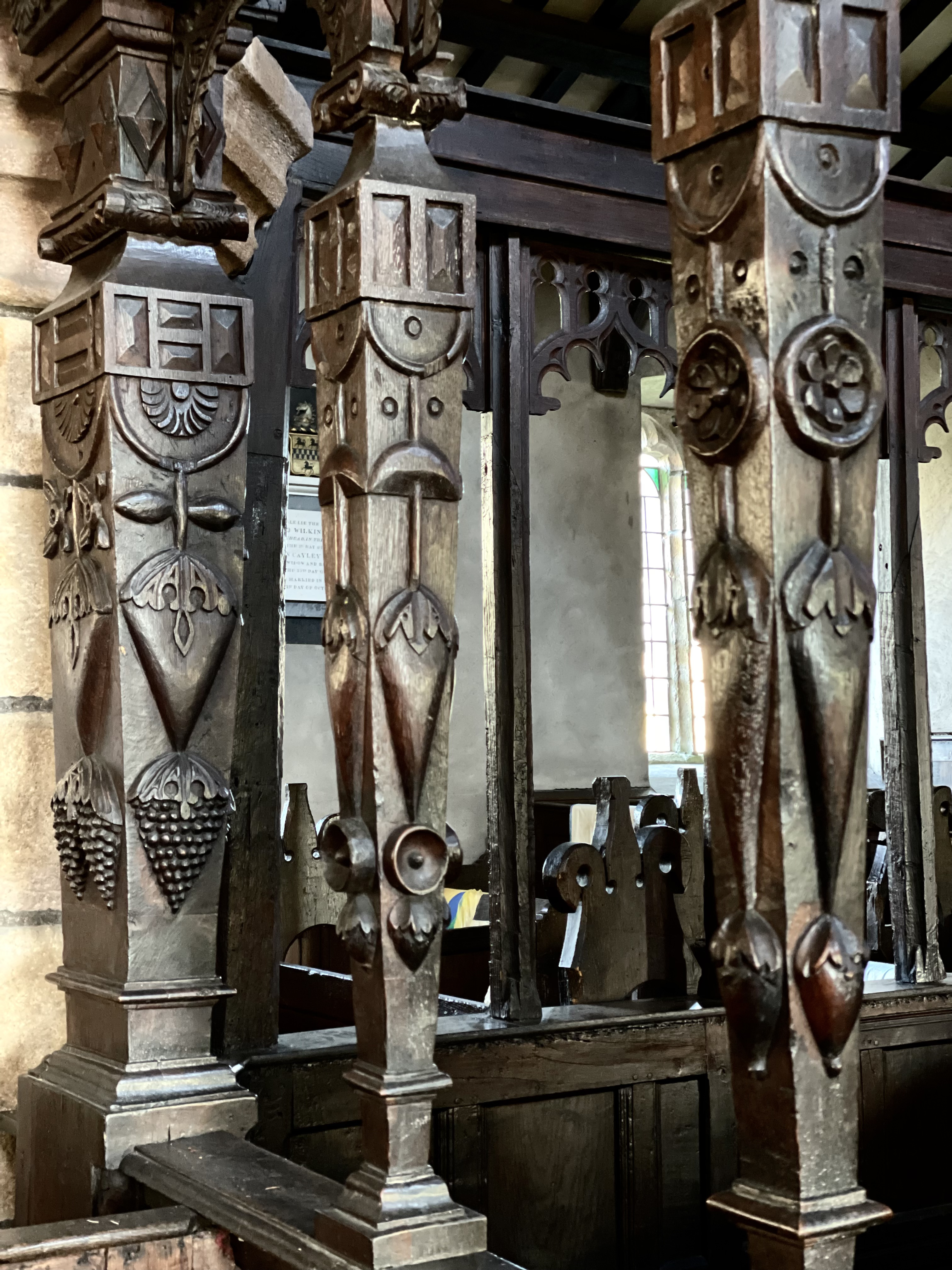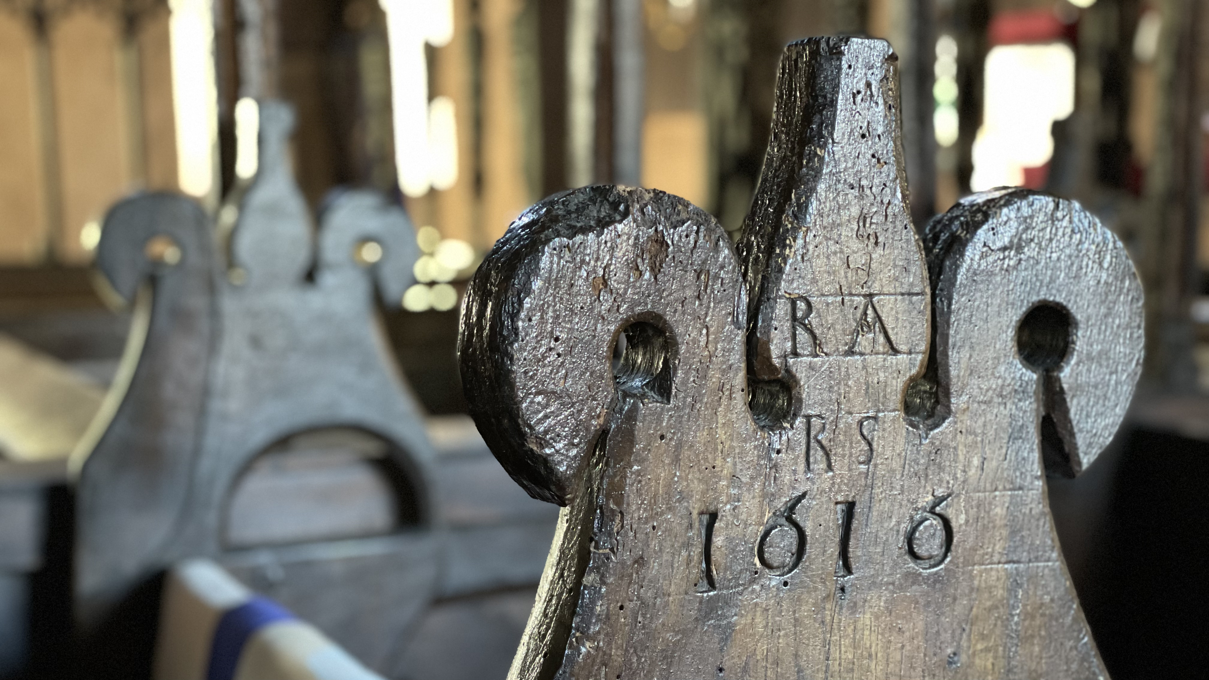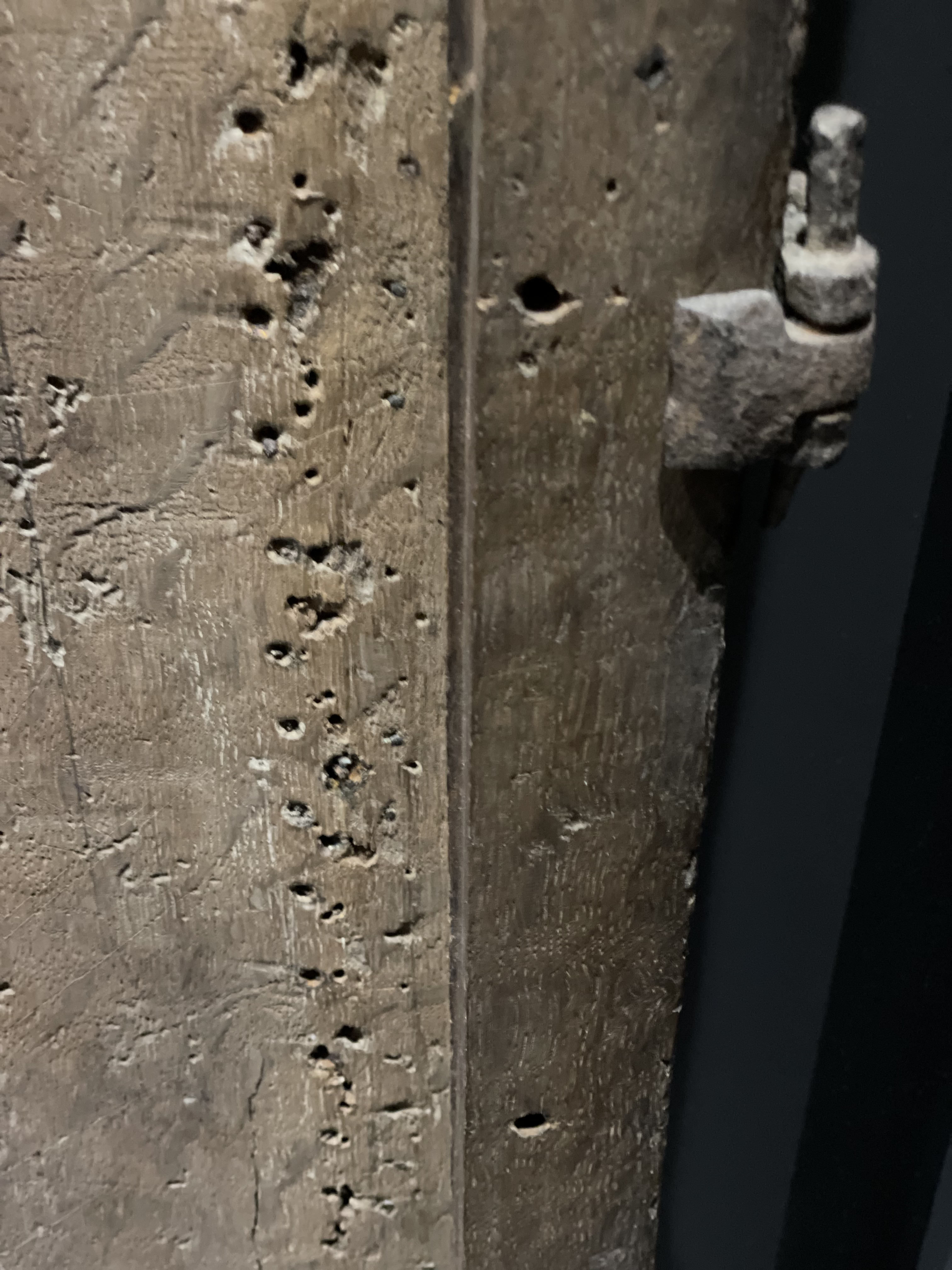 📸 Not the Mappa Mundi, but something equally intriguing for me. The original frame that held it. It was found in a cupboard in 1989. The trees that make up the frame were felled between 1289 and 1311. The trees came from Monmouthshire, Gloucestershire and Herefordshire.