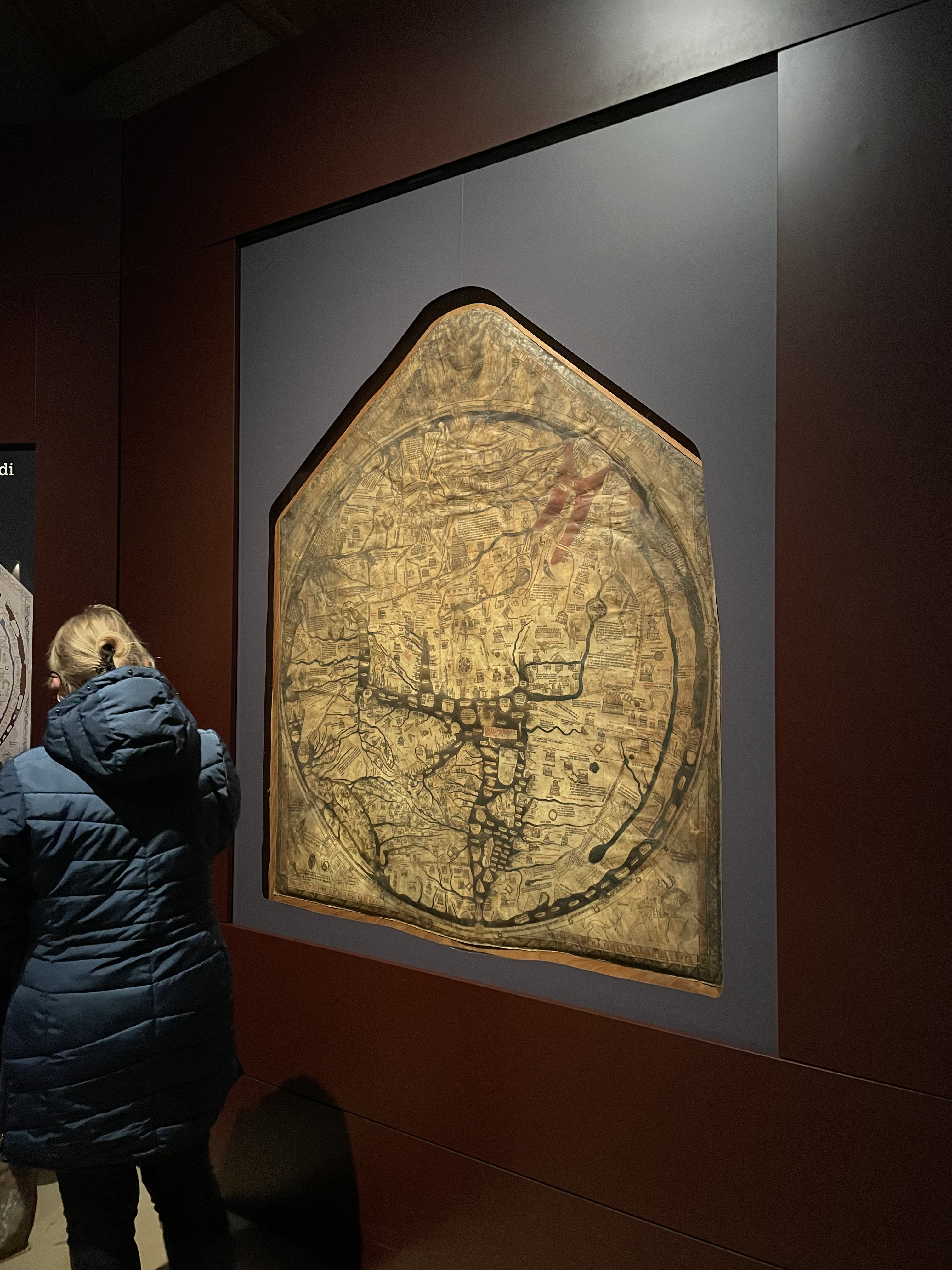 The nail holes that matched the circumference of the Mappa Mundi perfectly.