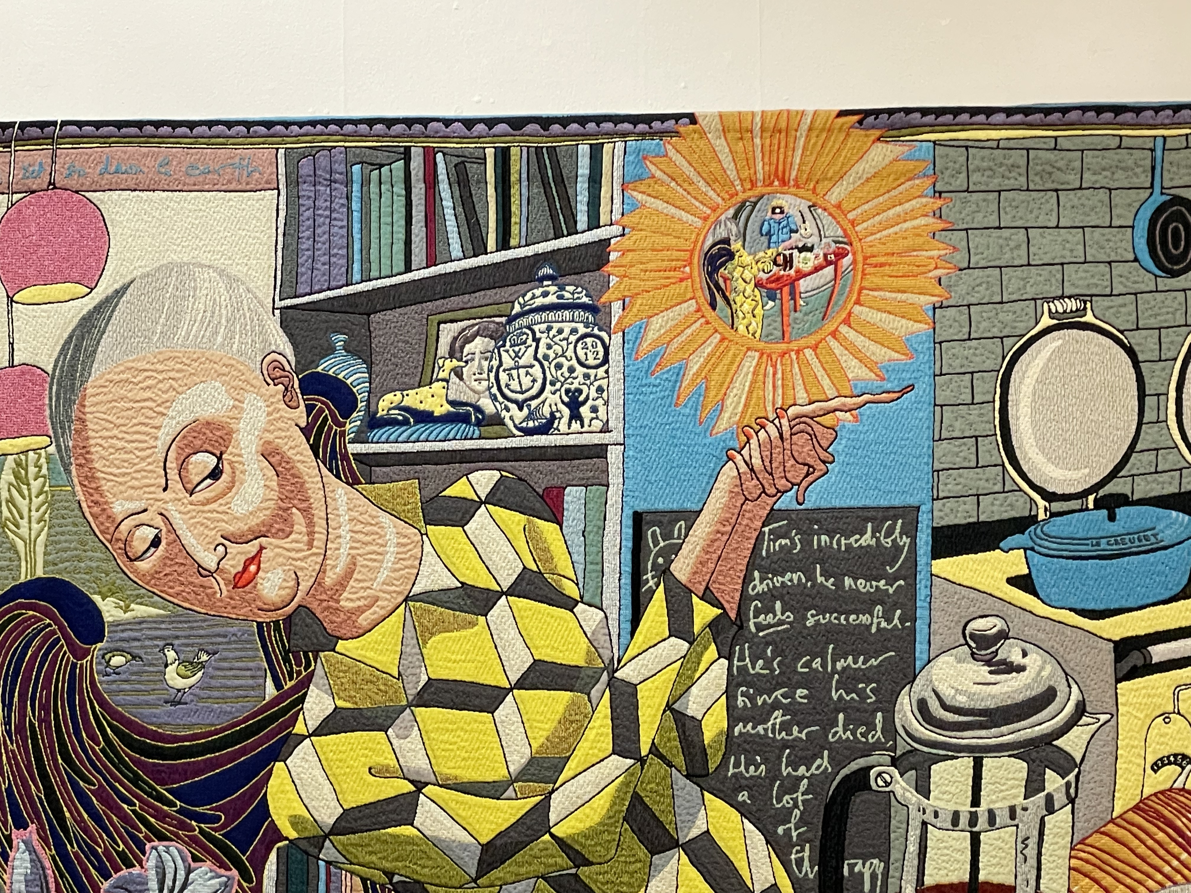 Recently, in Herefordshire at the Grayson Perry exhibition I noticed a mirror on the wall of one of his tapestries. In placing a photographer within the mirror, Perry creates another world beyond the tapestry. There's the reflection, and then there's the imagined world where the photographer stands on the spot that corresponds to where I am stood. The photographer in the mirror is me. It is also a world that captures another side of the person in the yellow dress - a world of diverse perspectives.