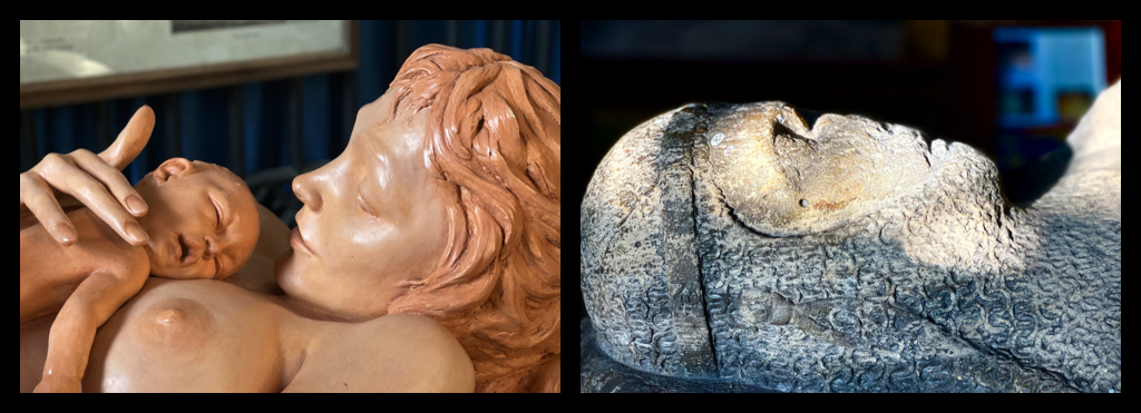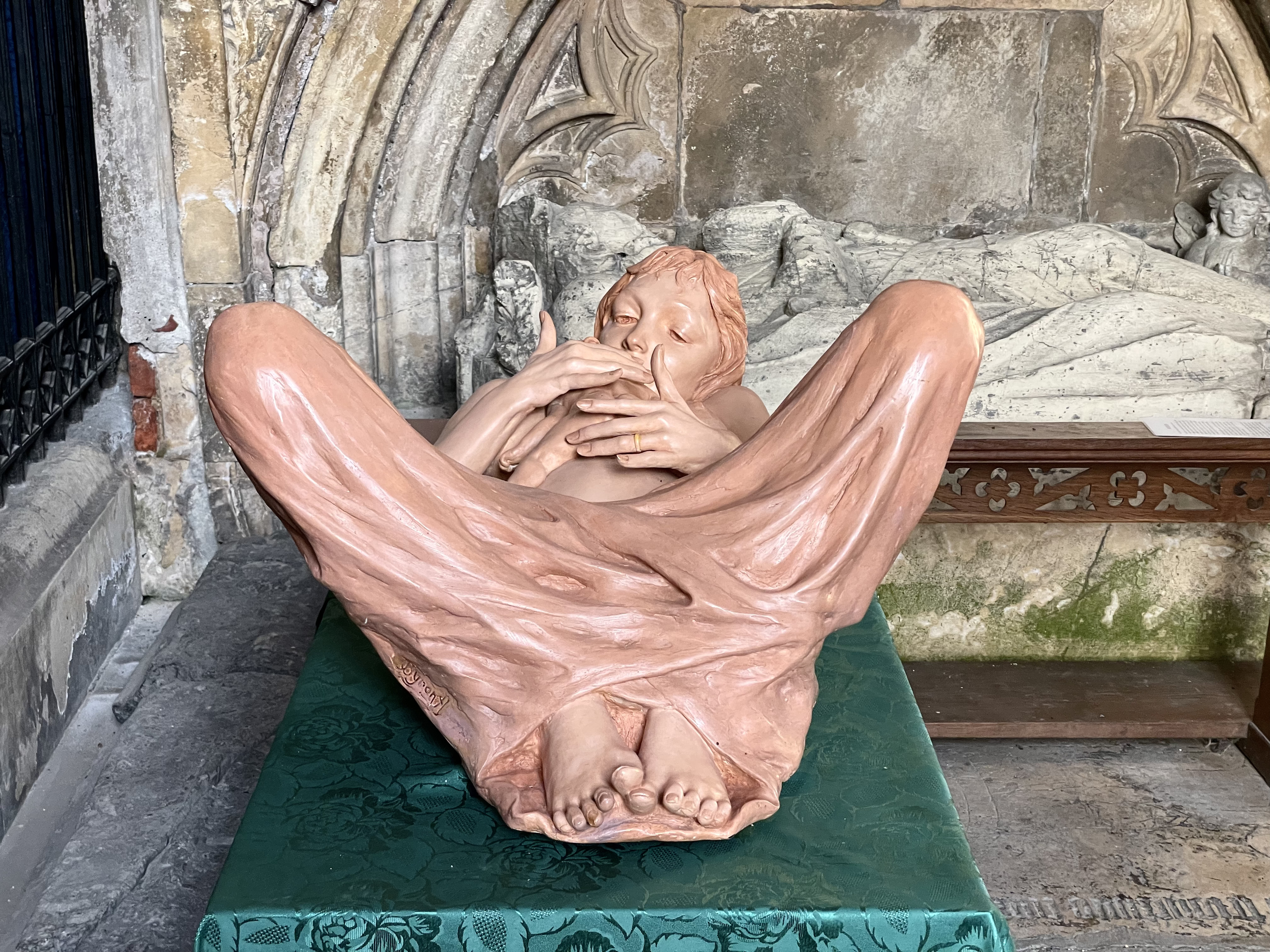 Amongst the sombre medieval effigies is a remarkable testament to new life: a life-sized sculpture, made of jesmonite and marble called 'The First Meeting.' I love the way art can confound expectations and build new and alternative narratives in places steeped in history.