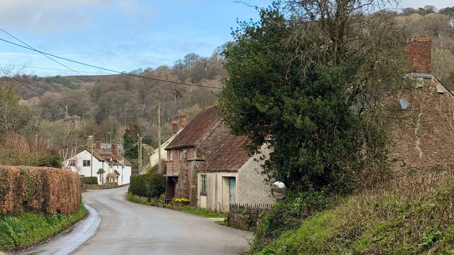 On his journey, Thomas carried a camera. He took a photograph of Crowcombe along a lane with the church tower rising in the distance. When I parked up, I first tried to find that same spot - but the road was too dangerous to walk.