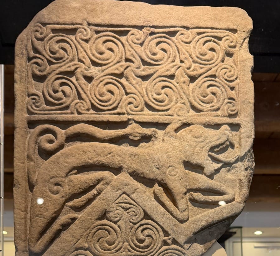 What becomes clear at Portmahomack is that this monastery was not peripheral. It was literate, organised and deeply connected. Evidence suggests specialist workshops here - including vellum production from calf hide, metalworking and manuscript preparation. Some scholars have proposed links between the monastery’s craft traditions and the wider Insular world of book production - the same artistic milieu that produced the Book of Kells. While it cannot be proven that vellum for Kells was made here, the geometric interlace and animal forms carved in Tarbat stone belong unmistakably to the same visual language.
