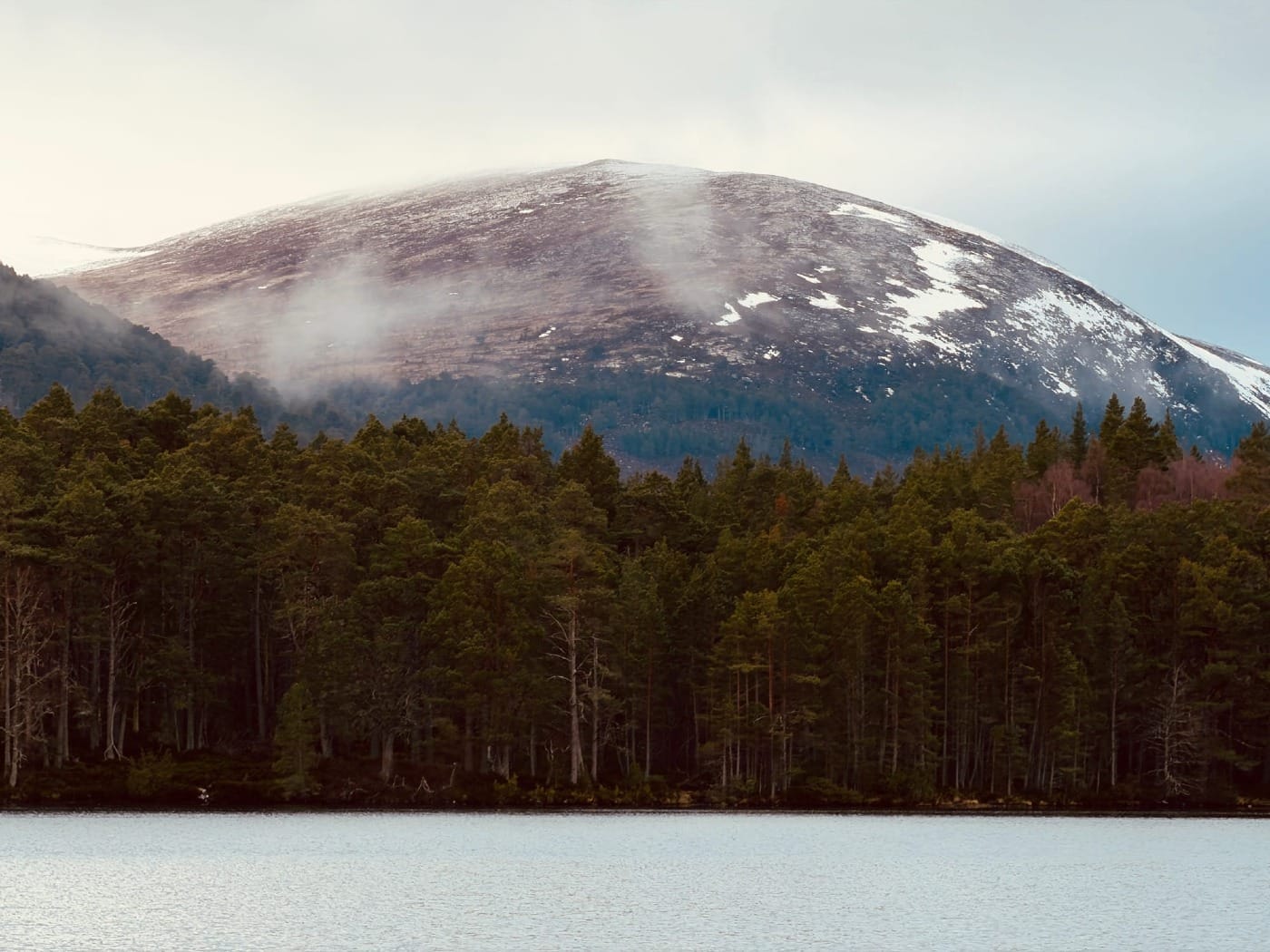 It was at that instant that the sharp easterly dropped and beyond the forest of Rothiemurchus, the snow bones of Creag Dhubh tousled the clouds into thin wisps of galloping guilloche.