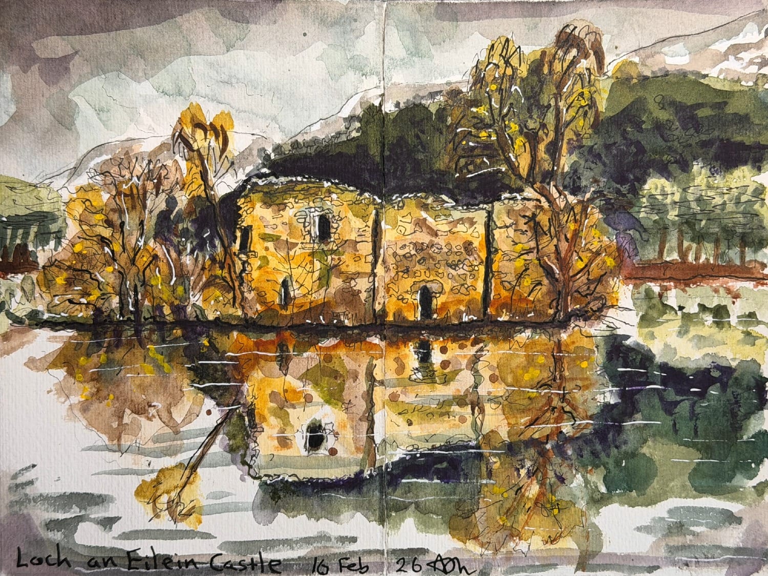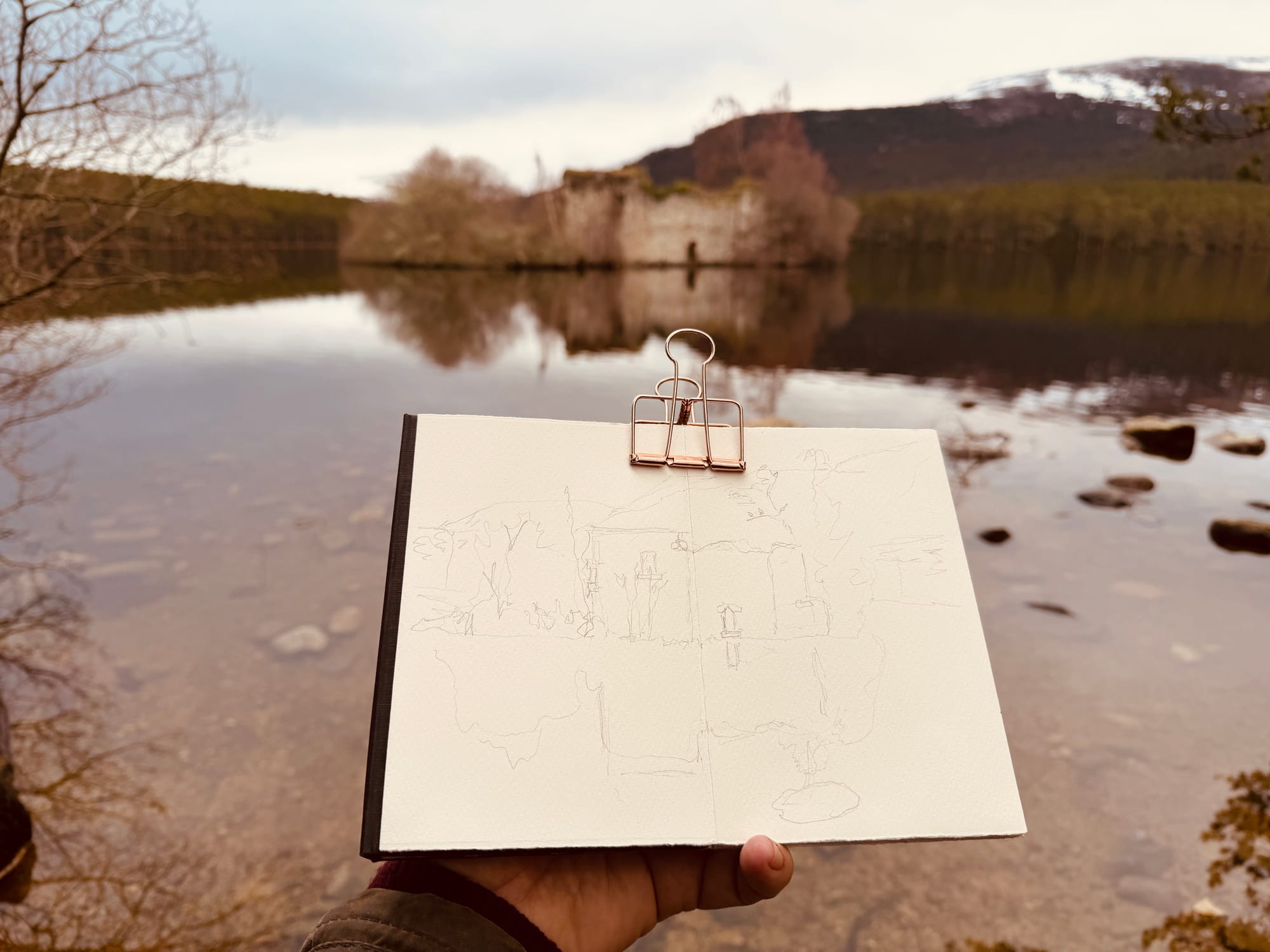 There was a moment at Loch an Eilein - only the briefest of moments - but it was a moment where time stood still, where the earth and sky and light and shade were as one. Just before it happened, I’d taken up my sketchbook and used water from the loch to fix my paint.