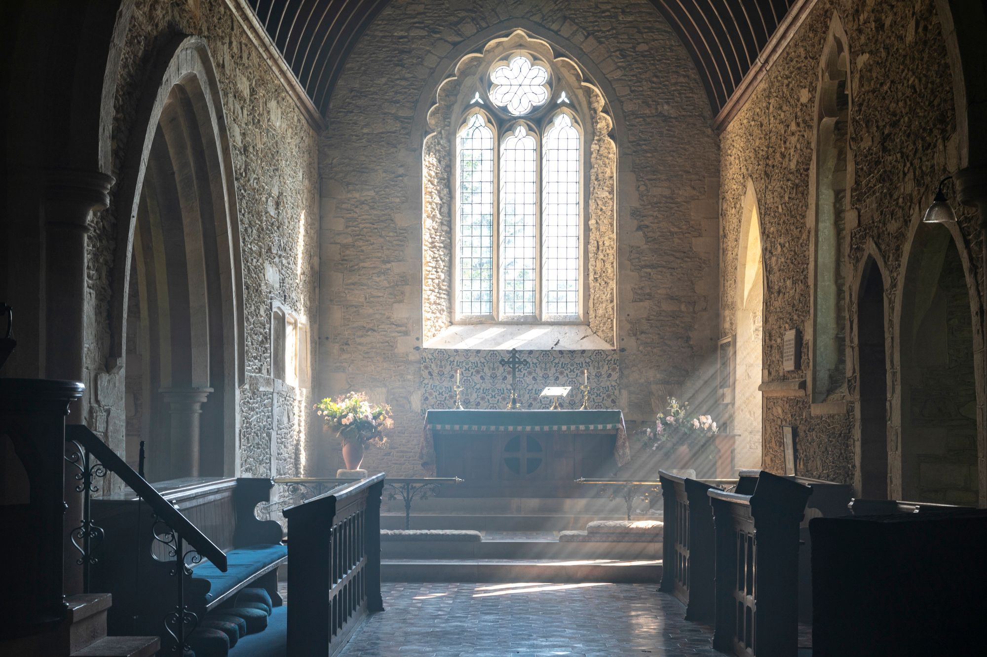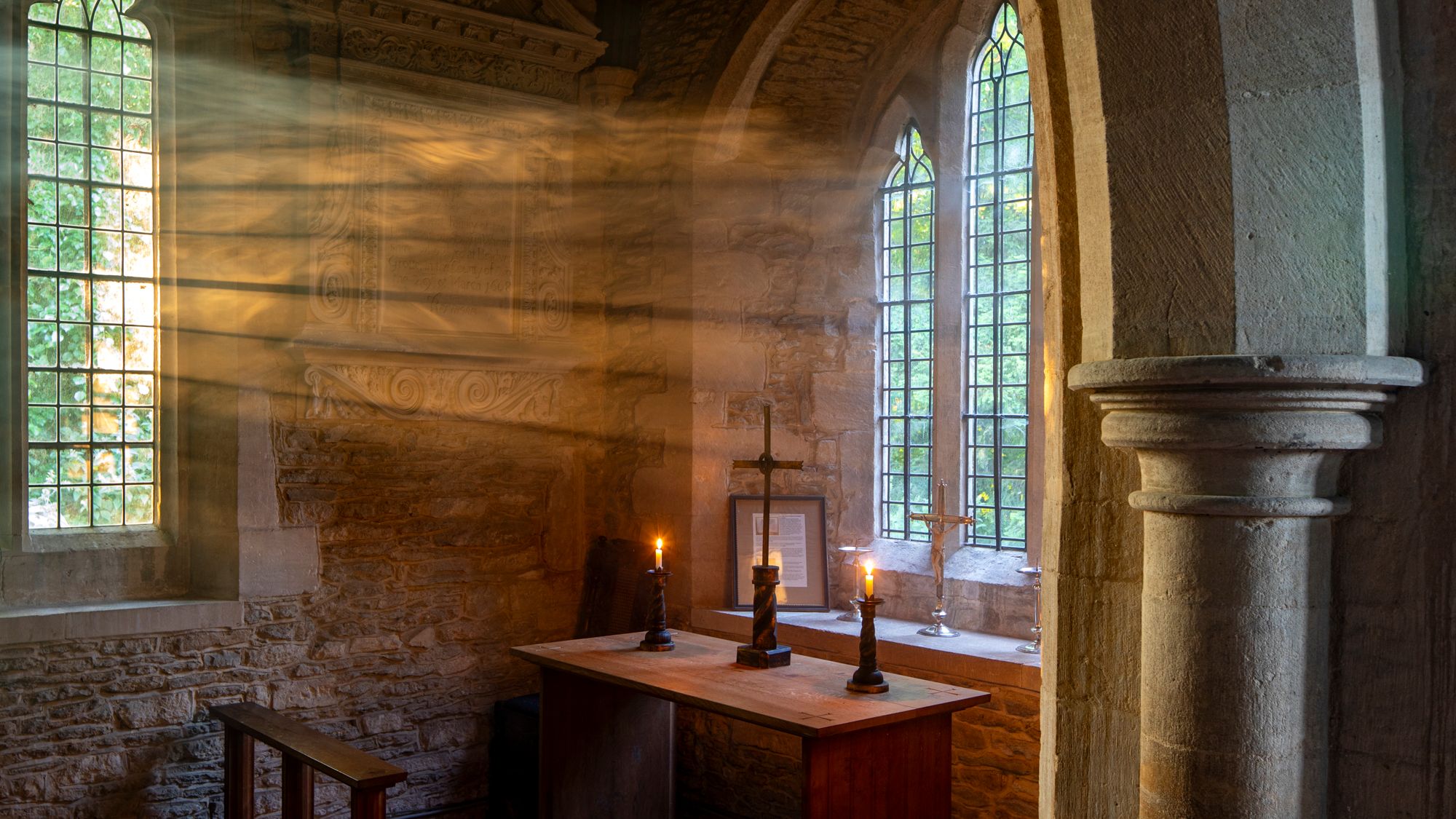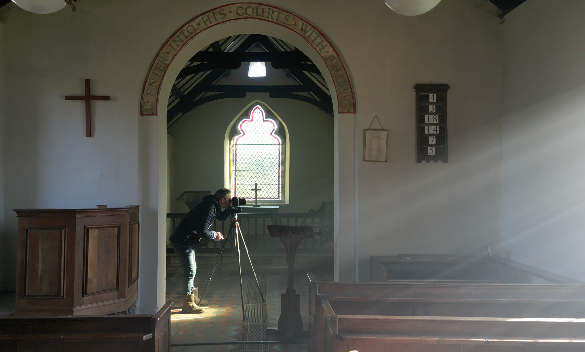 I used the technique recently at St. Peter and St. Paul, in Broadwell, Oxfordshire. My aim was to capture the light through the window of a side chapel. The next day, I wrote in my diary about my experience during the shoot: